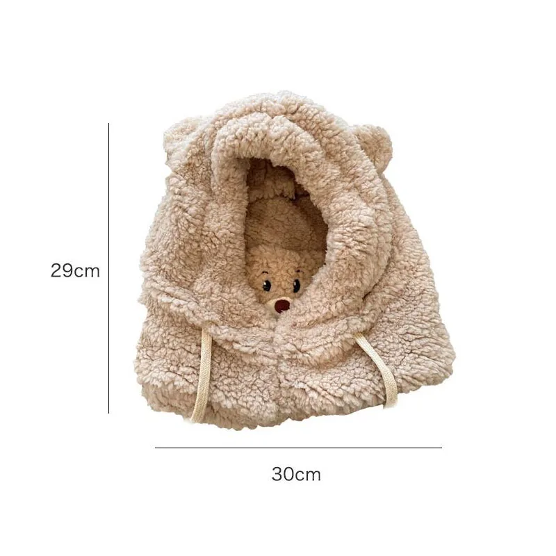 Шапка с мультяшным медведем, женская зимняя шапка, шарф, ветрозащит...