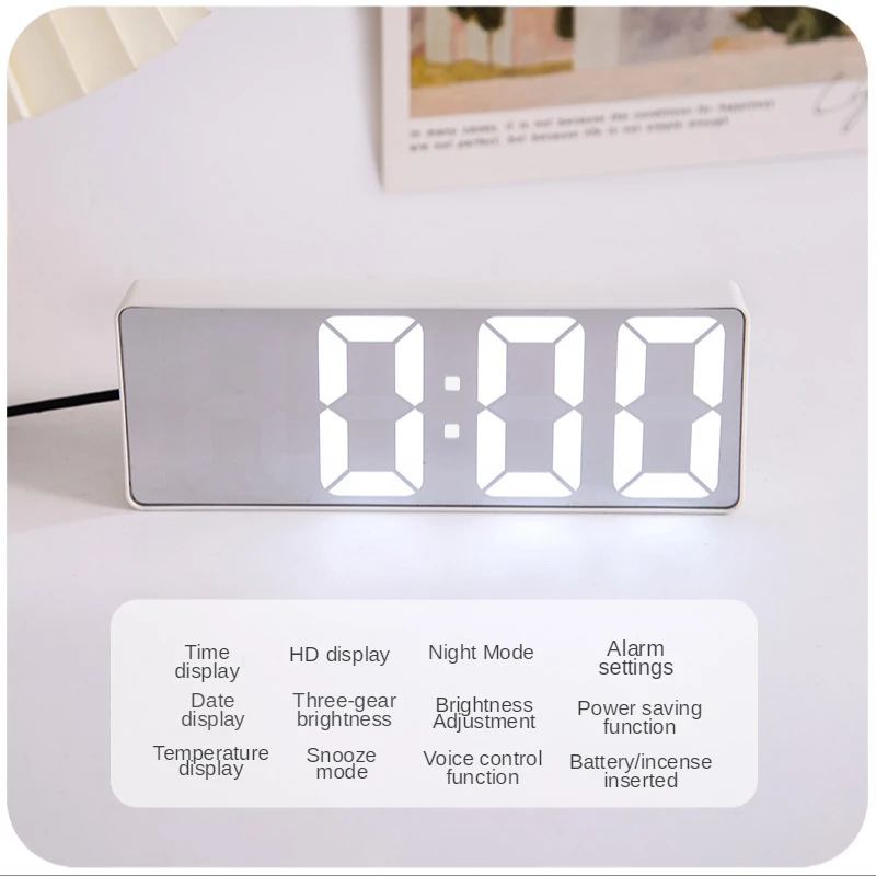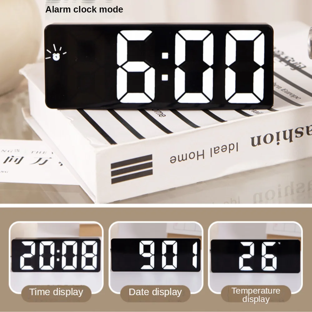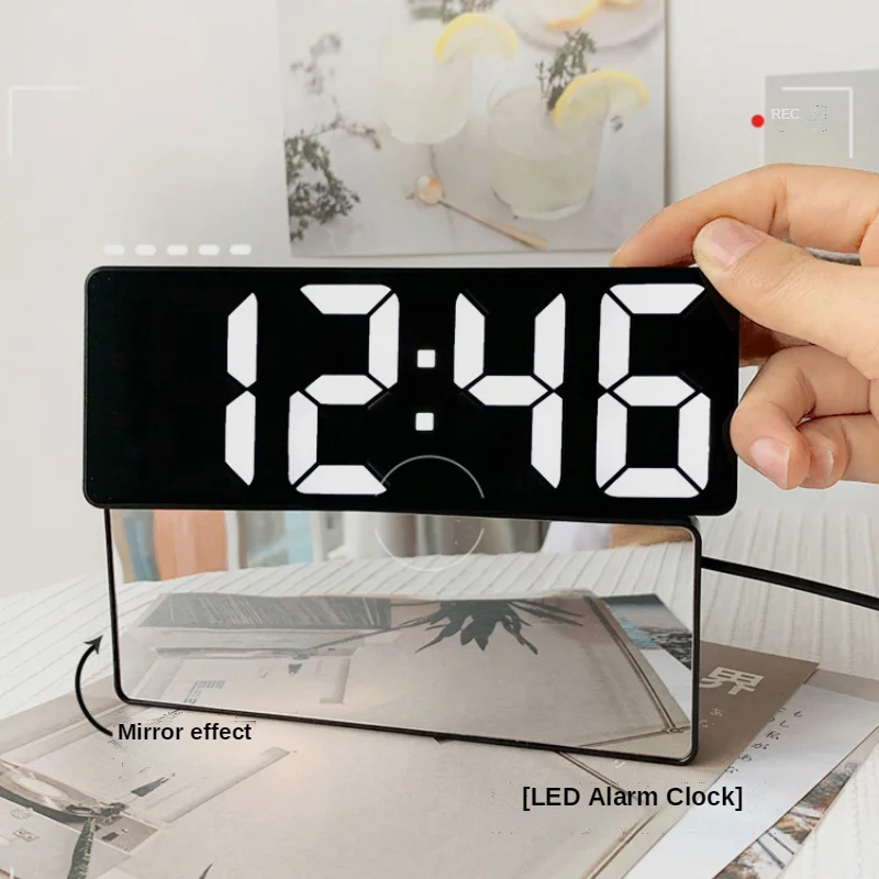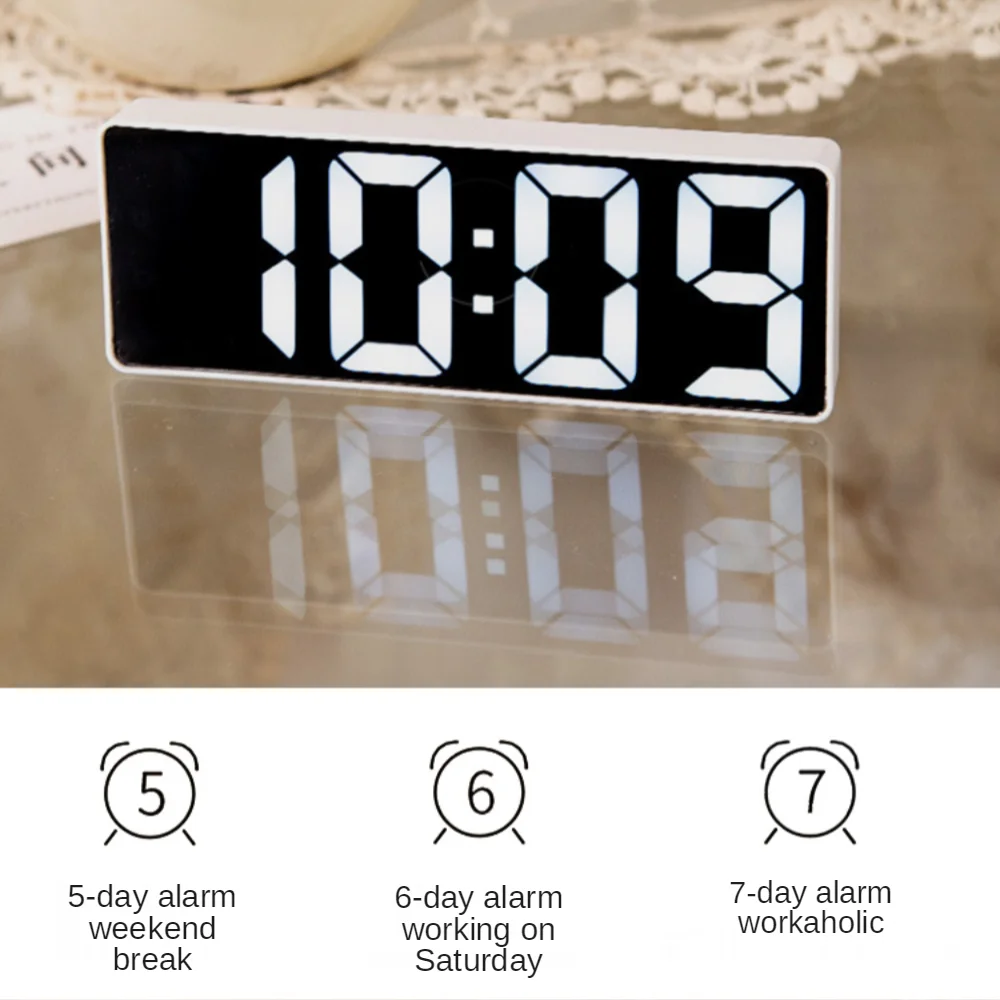 Зеркальные цифровые часы в скандинавском стиле, светодиодные настольные часы с температурной подсветкой, милые цифровые 3d-часы с будильником для спальни