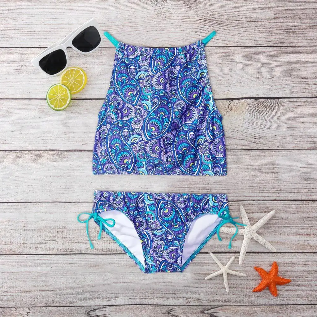 Купальник TELOTUNY 2021, Летний Пляжный спортивный купальник с принтом для девочек, Танкини с лямкой на шее, купальник из двух предметов, наряды, купальный костюм для маленьких девочек