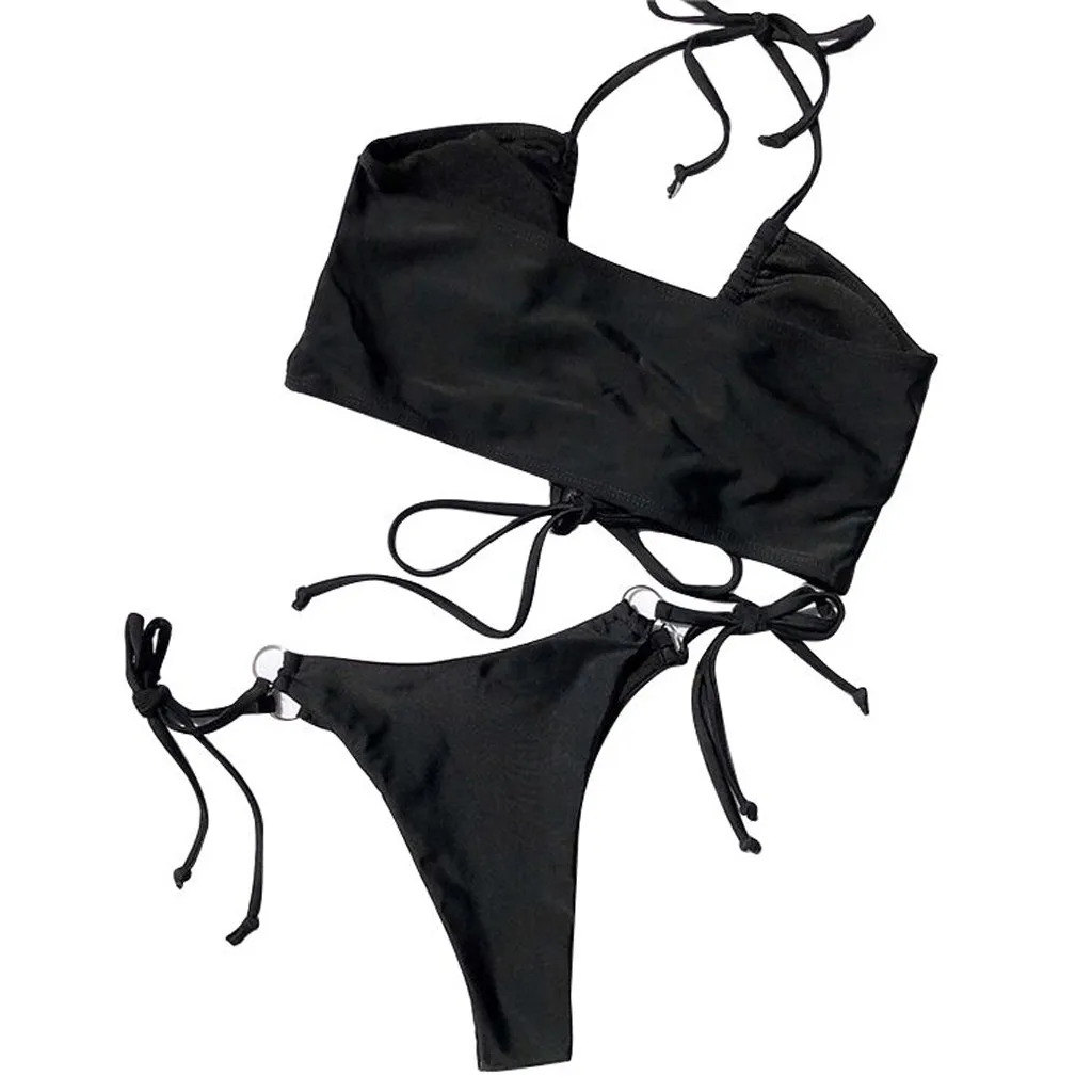 Женские Купальники TELOTUNY, Женский комплект бикини пуш-ап с высоким V-образным вырезом из двух предметов, однотонный летний сексуальный купальник 2021, пляжная одежда
