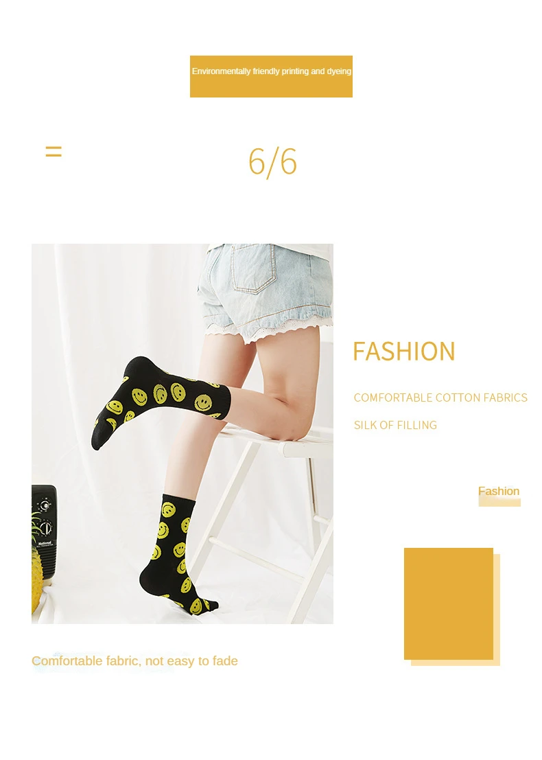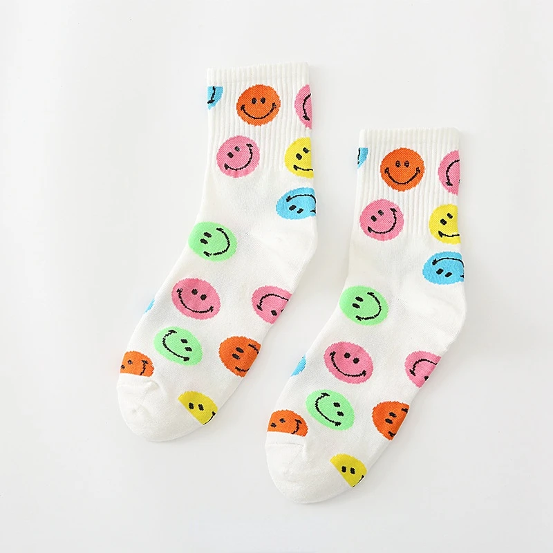 Новинка весна-осень женские носки из чесаного хлопка с рисунком улыбающегося лица дышащие женские носки средней длины Koala