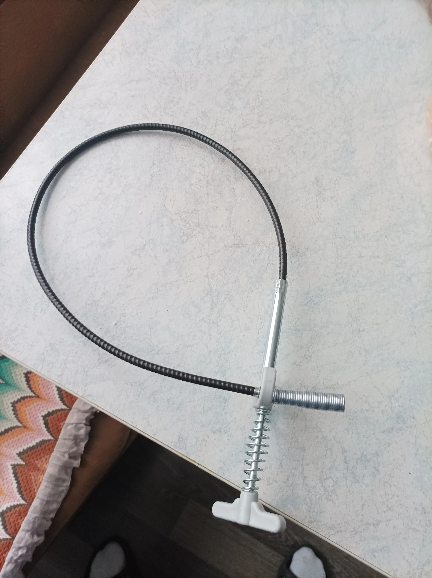 Штука рабочая, все как на фото. Но для меня оказалась совершенно бесполезной. Диаметр головной части больше 1 см и поэтому она не влезет ни в одну решетку слива - в на кухне , ни в ванной. Нужно откручивать слив, но если так делать , то смысла в этом тросе уже и нет. В описании ни где не указан размер головной части. Единственное решение - рассверлить одно из отверстий слива до размера головки троса.