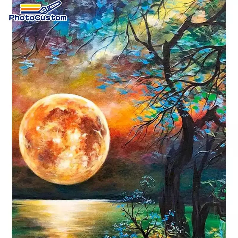PhotoCustom картина маслом по номерам, красочная луна, дерево, ручная роспись, рисование по номерам, Настенный декор для детской стены