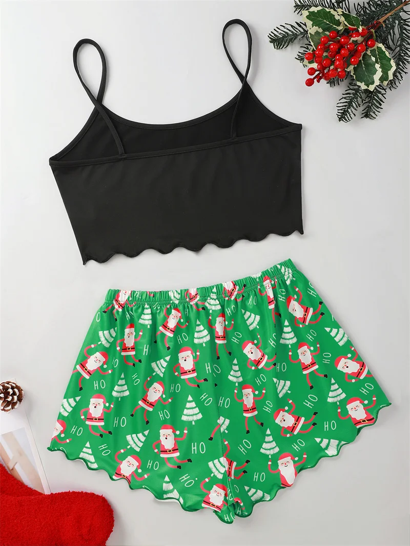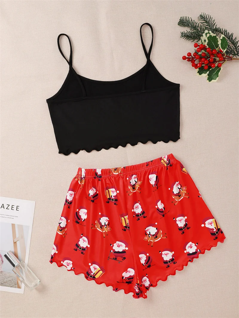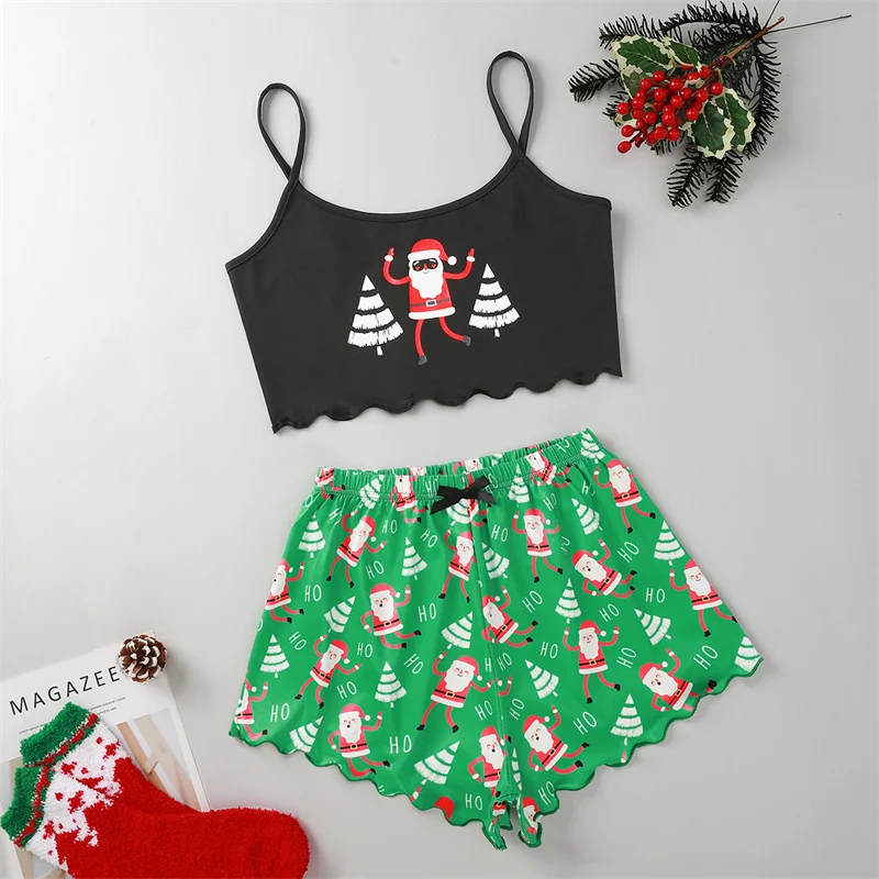 Hirigin, Рождественская пижама с принтом, Женская майка без рукавов, короткое нижнее белье, ночное белье, сексуальная домашняя Дамская пижама, комплект нижнего белья