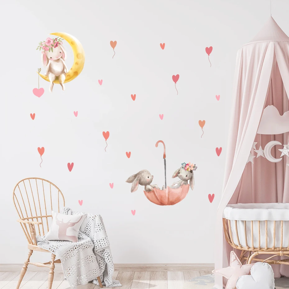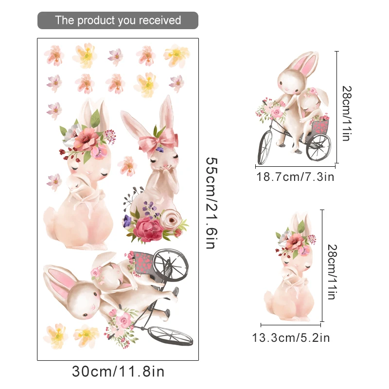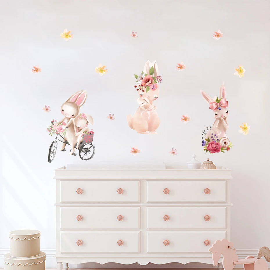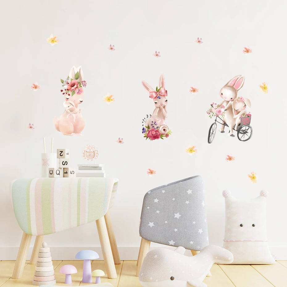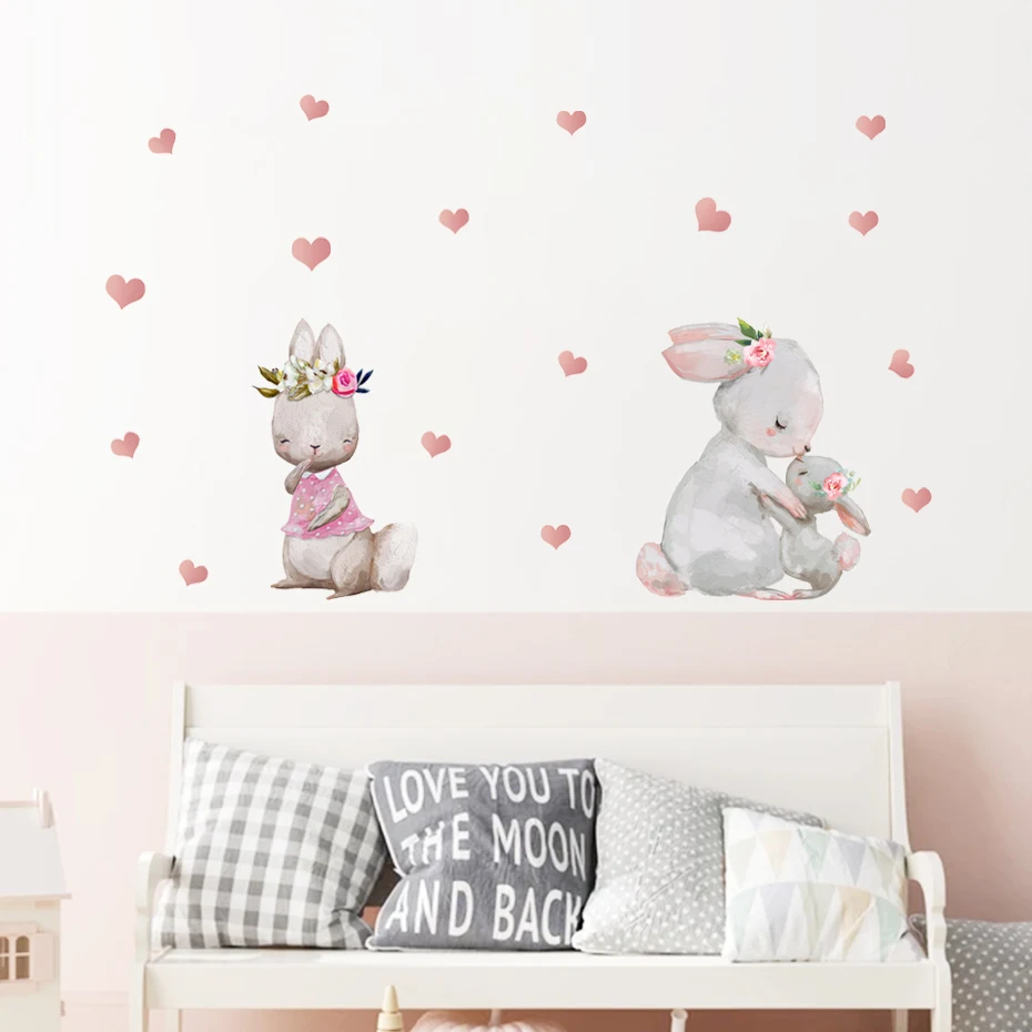 Наклейки на стену для детской комнаты с изображением кролика, матери и ребенка