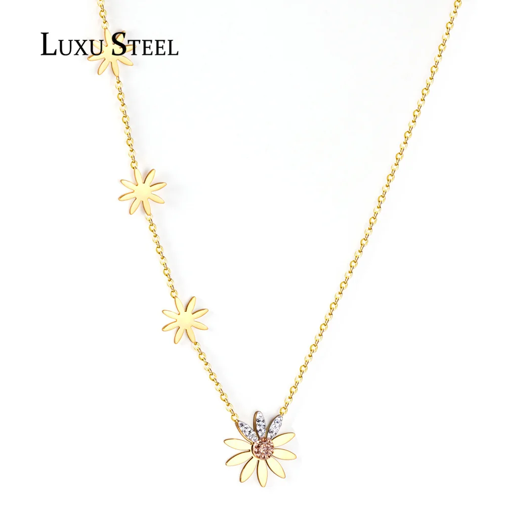 Воротники LUXUSTEEL из нержавеющей стали с цветами-Аксессуары для ожерелья 2021 Новое поступление серебристый цвет 45 см + 5 см звеньевые цепи ожерелье для вечеринки
