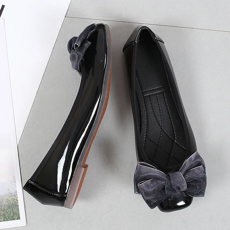 Туфли женские из лакированной кожи, заостренный носок, плоская подошва, бант, повседневная обувь, балетки, летние