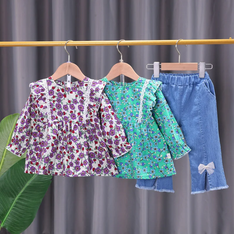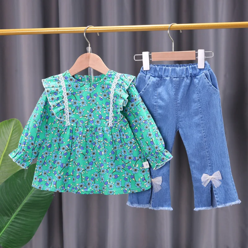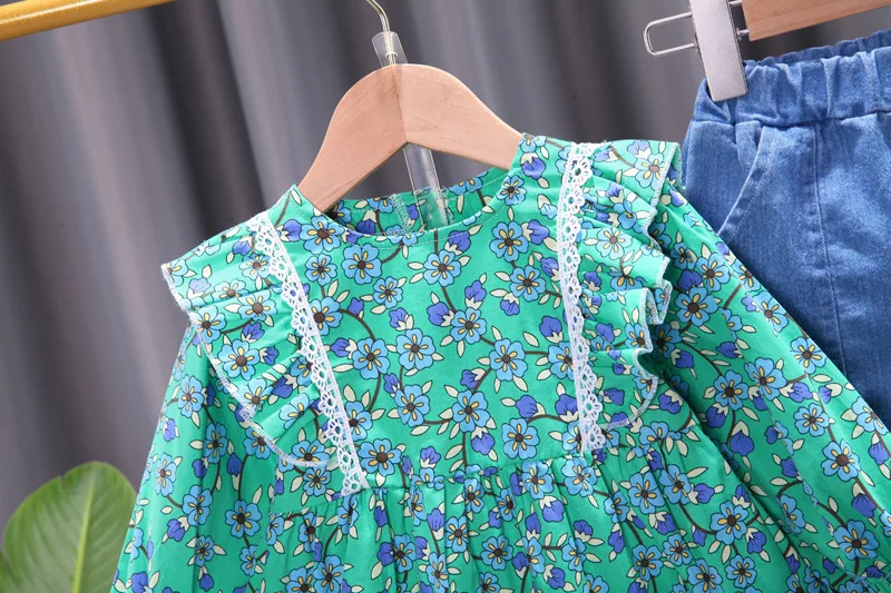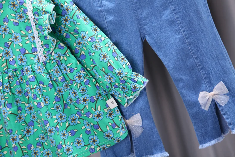 Детское платье с длинным рукавом, с цветочным принтом и бантом