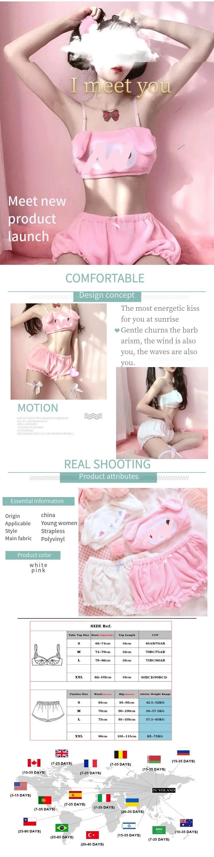 Розовый и белый кавайный бархатный топ и трусики, комплект для дево...