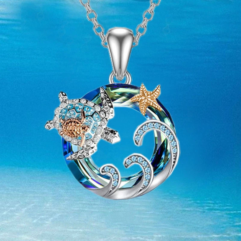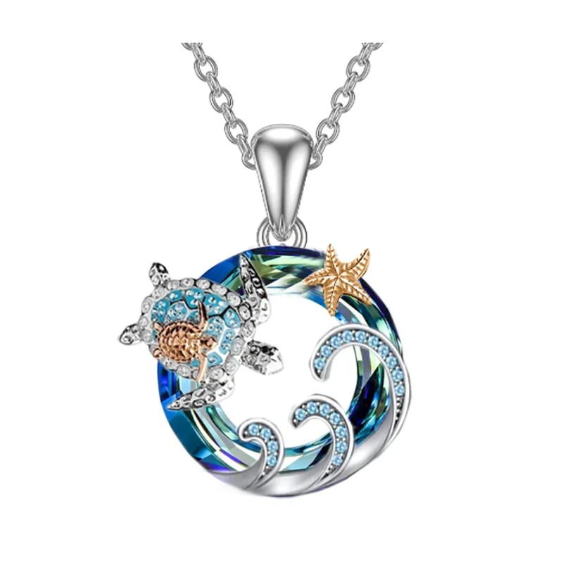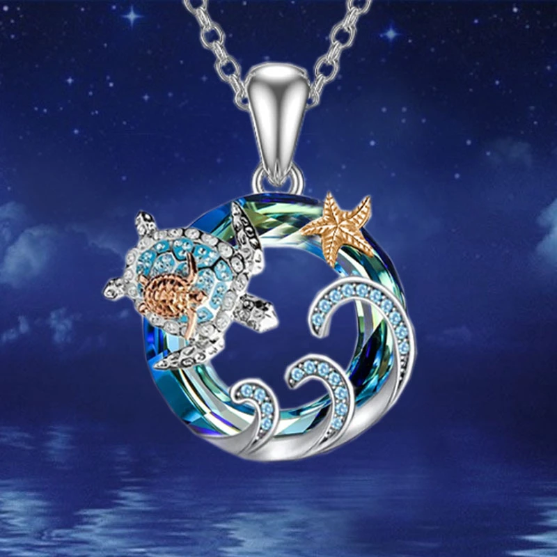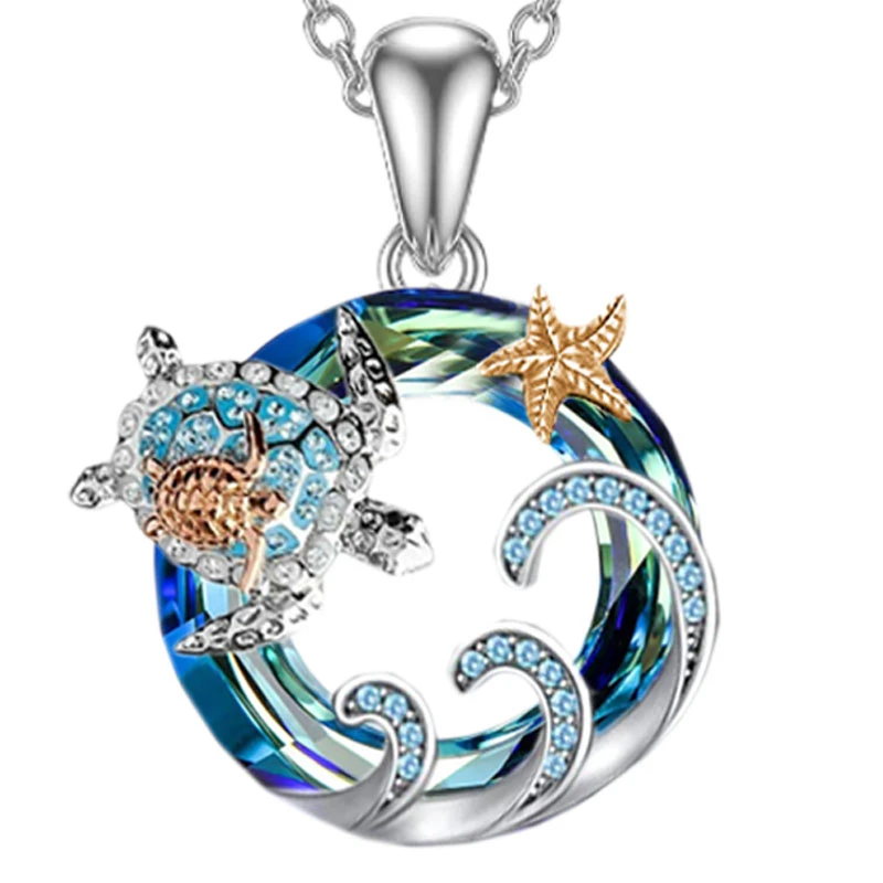 Ожерелье для семьи с искусственными звездами, милой девушкой, ювелирные изделия для матери и ребенка, черепаха, морское голубое круглое хрустальное ожерелье