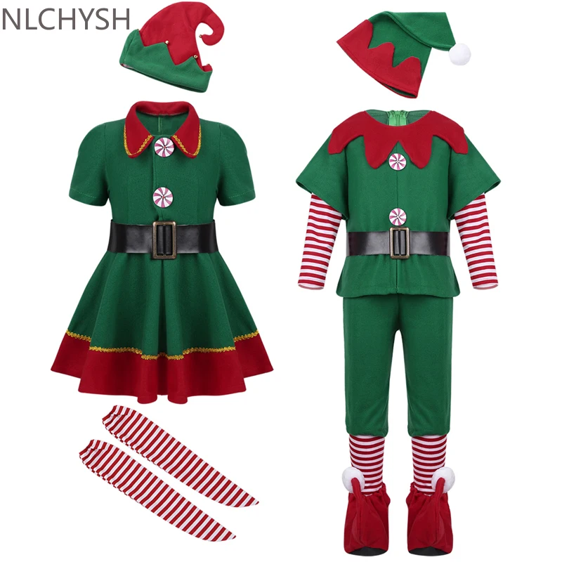 2021 зеленый эльф, Рождественский костюм для девочек, праздничный Санта-Клаус для девочек, новогодний Детский костюм, платье для вечеривечерние