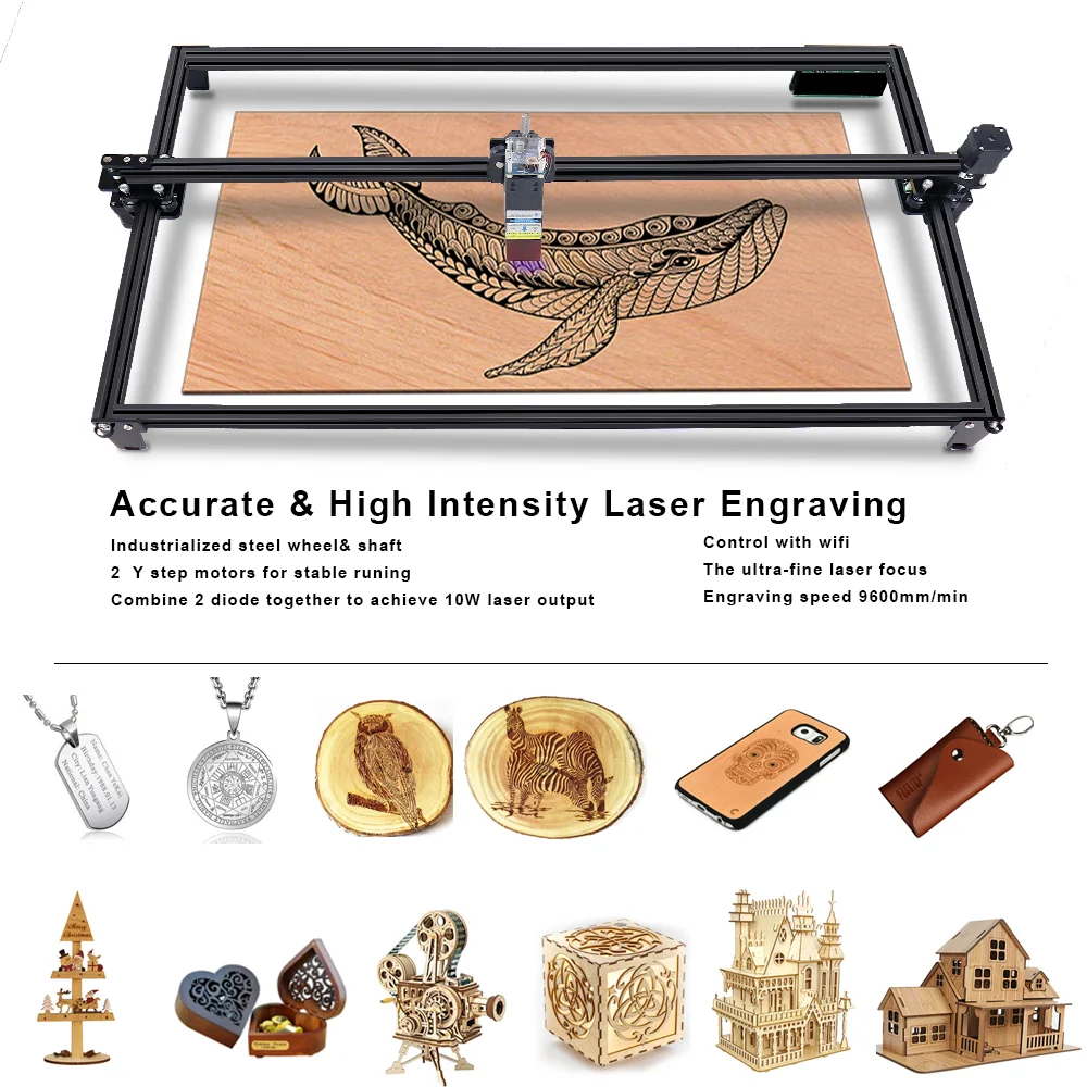 Модель 80 Вт (лазерный выход 10 Вт) поддерживает больше материалов для гравировки и резки, имеет более тонкую гравировку и более высокую скорость гравировки по сравнению с моделью 40 Вт (лазерный выход 5 Вт)