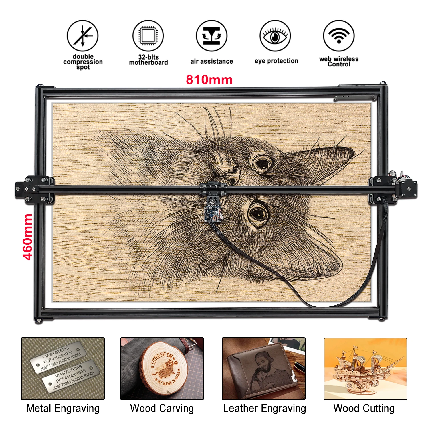 Лазерная машина имеет большую площадь гравировки (81X46cm) может удовлетворить ваши различные потребности в гравировке и резке.