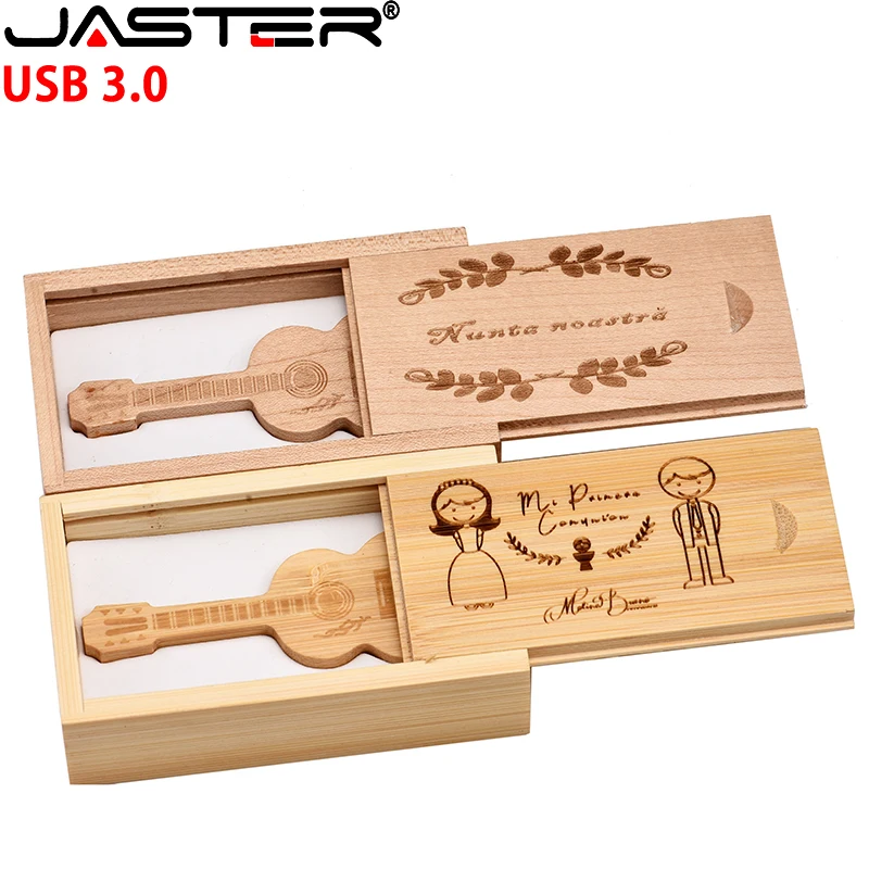 JASTER, 5 шт./партия, флеш-накопитель USB 3,0, бесплатная доставка, логотип, флешка, гитара, карта памяти, деревянная коробка, музыкальный флешка, 32 ГБ, 64 ГБ, 128 ГБ