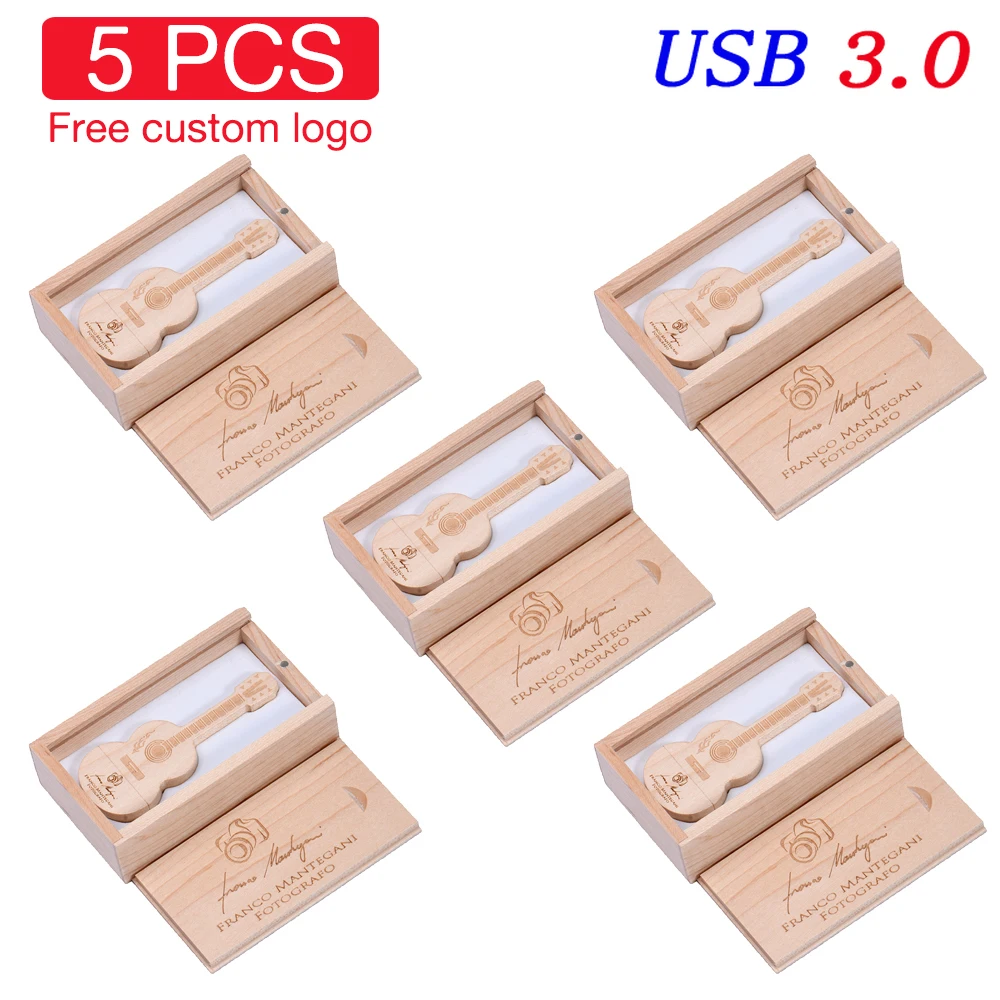 5 шт./лот, бесплатная доставка, Пользовательский логотип, ручка-накопитель, гитара, USB флеш-накопитель, деревянная коробка, карта памяти, музыкальный флешка, 4G, 16 ГБ, 32 ГБ, 64 ГБ, 128 ГБ