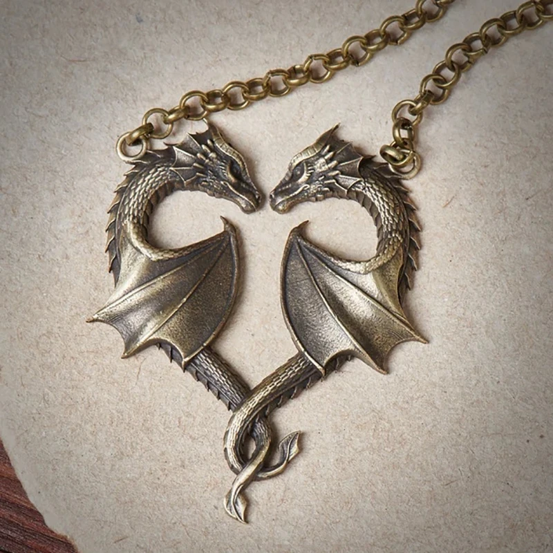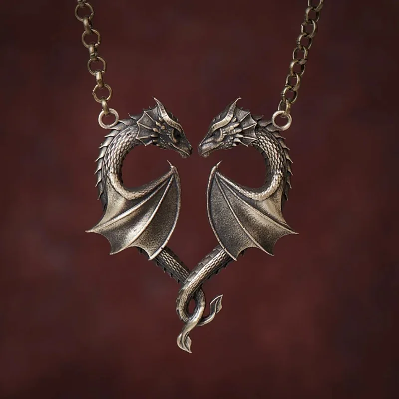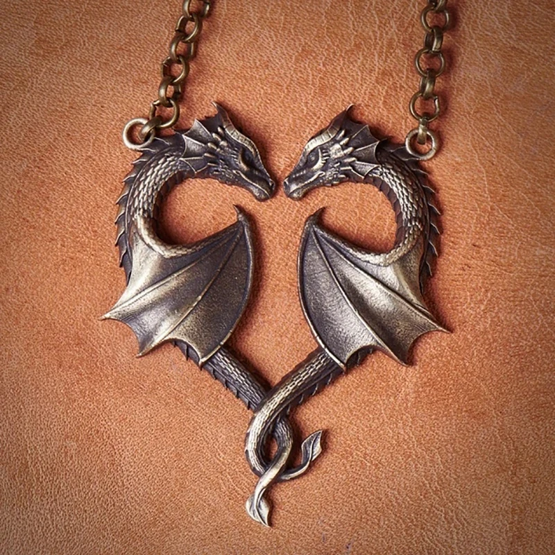 Винтажное ожерелье в форме сердца, кулон в виде мифического зверя, огня, дракона, мифическое ледяное ожерелье с драконом, тотемная подвеска