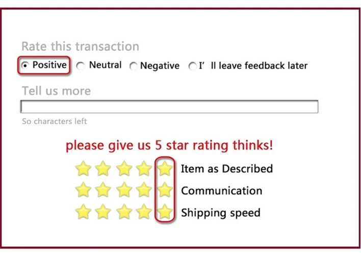 1. Если вам нравится наш продукт, не могли бы вы дать нам 5 звезд комментарий и поделиться с вашим другом. Вы цените нашу способность стать отличной компанией.