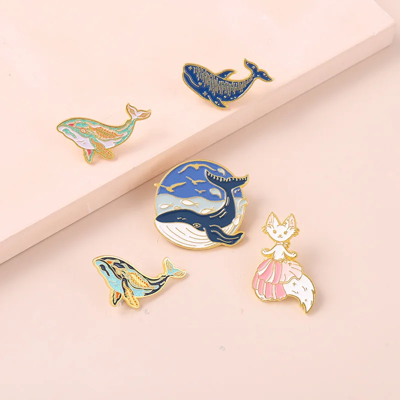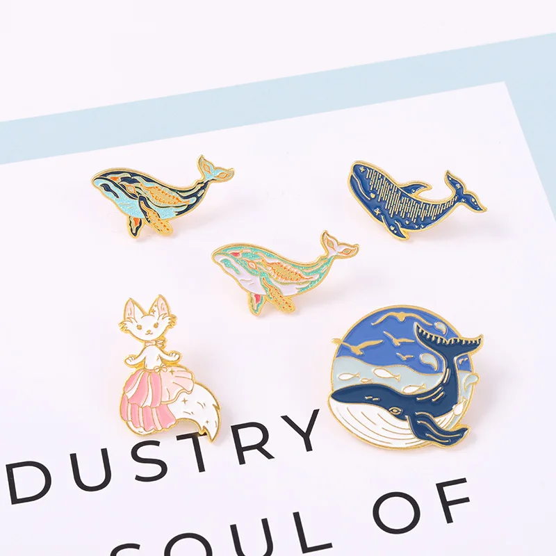 Эмалированная булавка в форме Кита, броши в форме горба мечты, Кита...