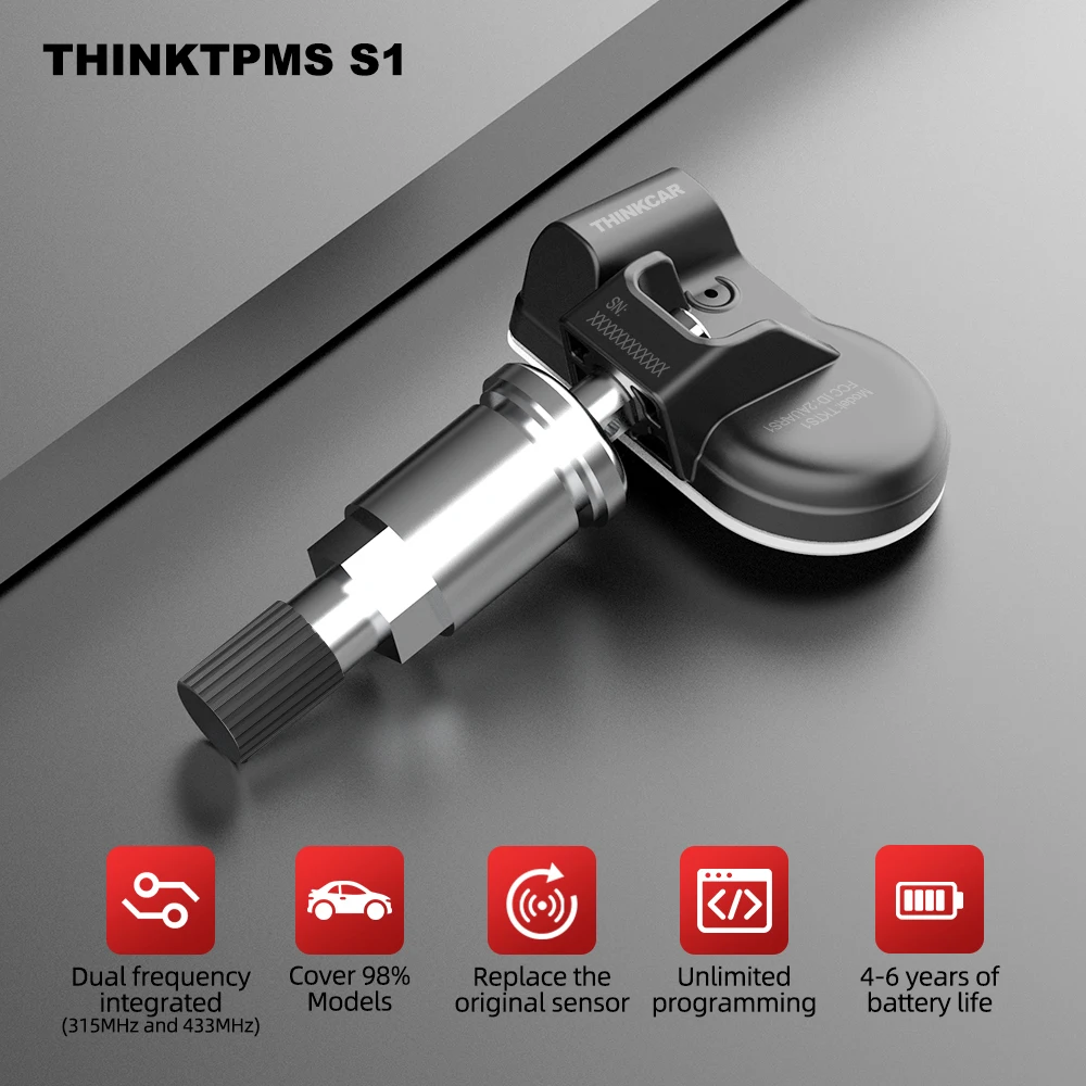 THINKTPMS S1 2 в 1 (315 + 433 МГц), В качестве программируемого универсального датчика, оснащенного зажимом и оснасткой, которые являются одновременно умными и эффективными, специально созданы для замены датчика с максимальным охватом приложений, простотой использования, OE-levelfit, производительность и надежность, поможет пользователям экономить затраты на диагностические работы и значительно повысить эффективность ремонта.