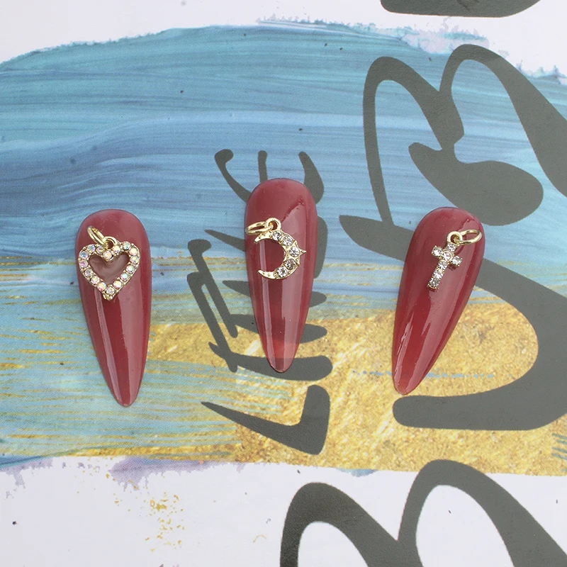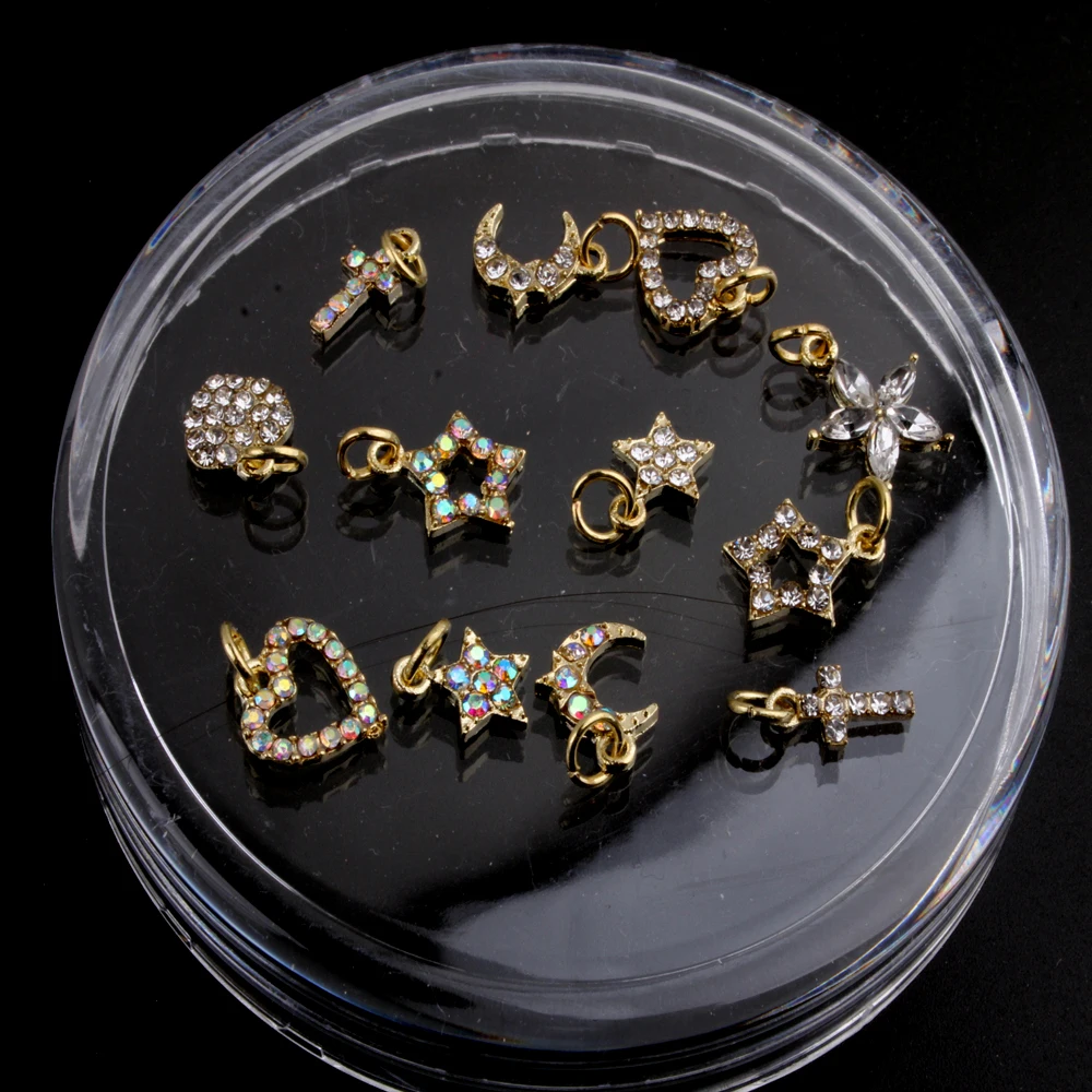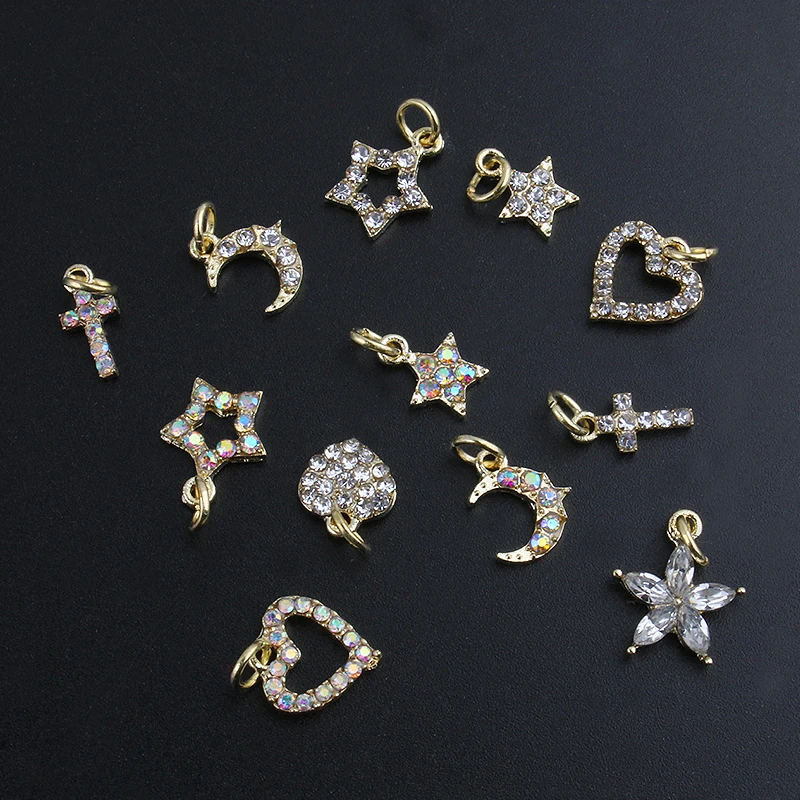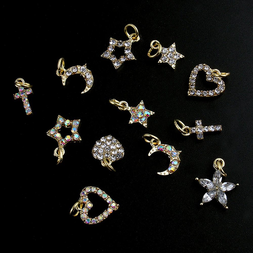 10 шт. хрустальный кулон для дизайна ногтей ювелирные украшения луна, сердце, Звездные ногти акриловые УФ-ногти сплав Маникюр горный хрусталь болтающиеся подвески