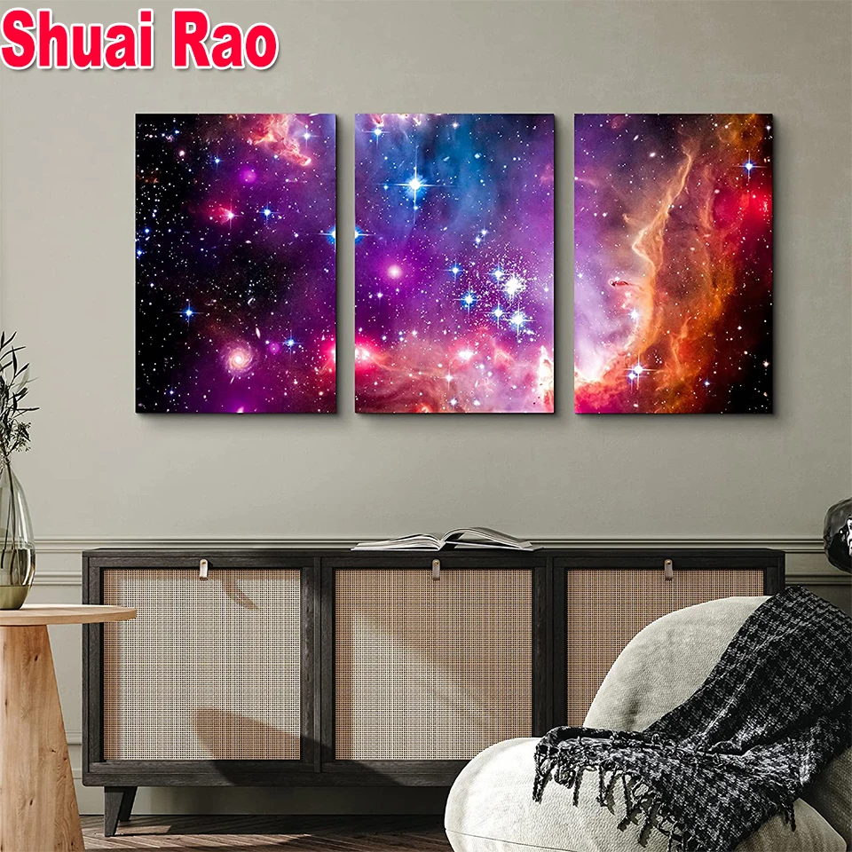Млечный Путь астрономия и пространство 5 d diy картина Алмаз 3 шт. Алмазная Вышивка Полный Круглый дрель Триптих Алмазная мозаика