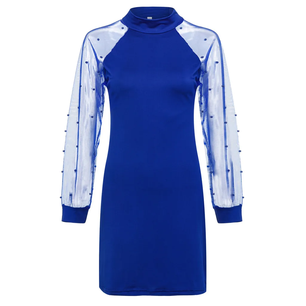 Весна 2022, женское платье с сетчатым рукавом и жемчужинами, ТРАПЕЦИЕВИДНОЕ мини-платье с длинным рукавом, женское вечернее платье для ночного клуба, платья #1635