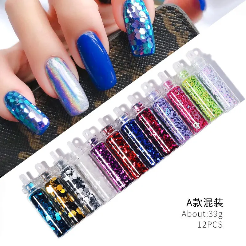 Украшения для ногтей, блестки для ногтей, блестящие тонкие хлопья, Наборы украшений, блестки для ногтей, художественные мигалки для ногтей, очаровательные лазерные украшения