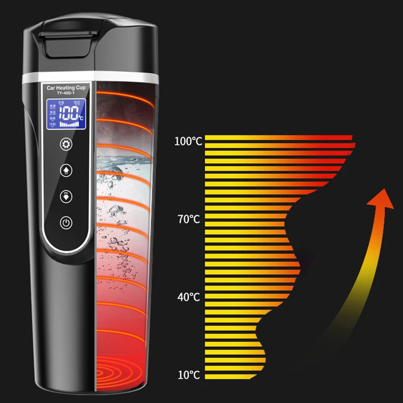 Портативная Автомобильная чашка с подогревом, термос из нержавеющей стали для воды с подогревом, автомобильный чайник, кружка для кофе с ЖК-дисплеем, температура
