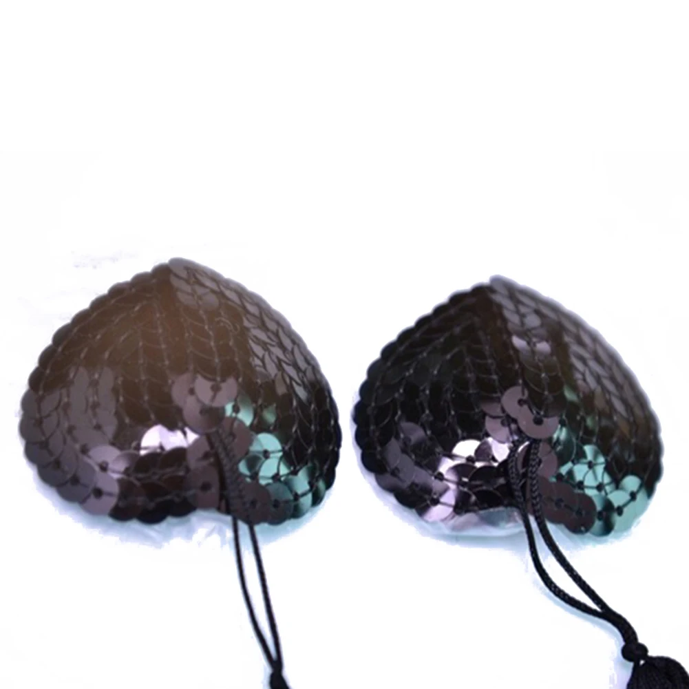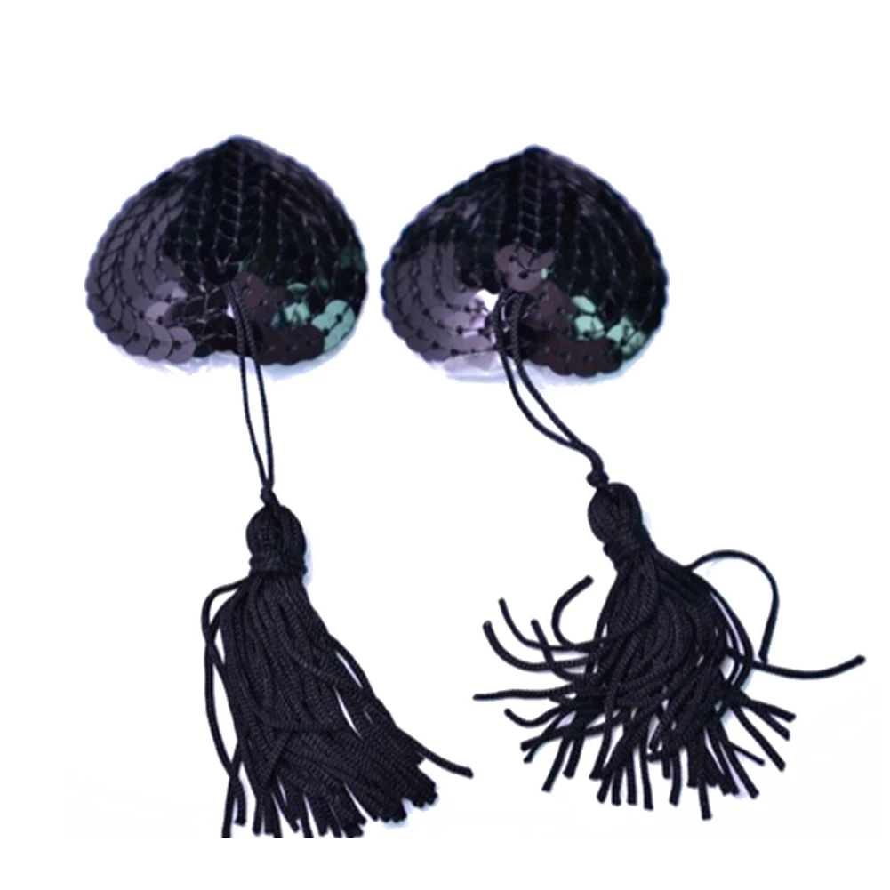 Наклейки на соски женские, черные, с блестками и кисточками, 1 пару...