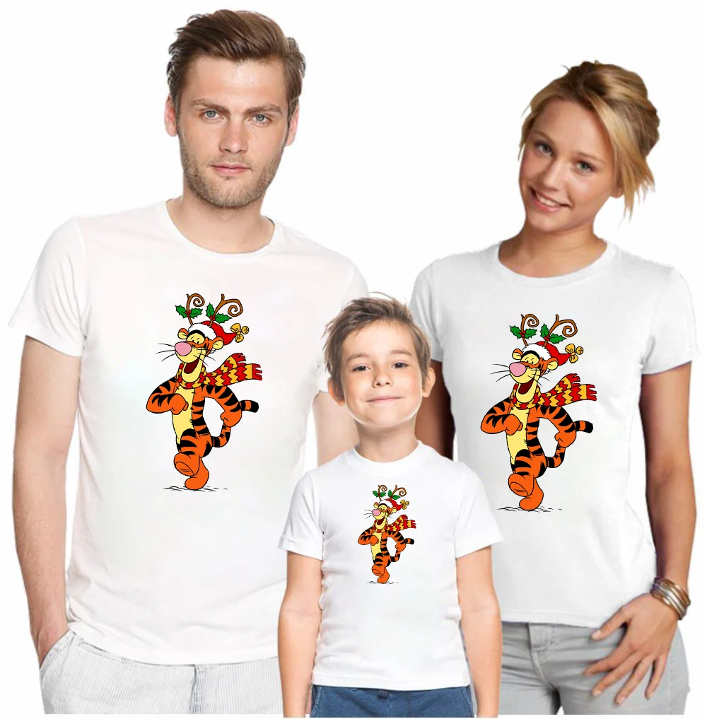 НОВАЯ РОЖДЕСТВЕНСКАЯ семейная футболка Disney, футболка в стиле тигра, Женская Милая футболка, повседневная мягкая хлопковая смешная одежда, топы в стиле Харадзюку для детей