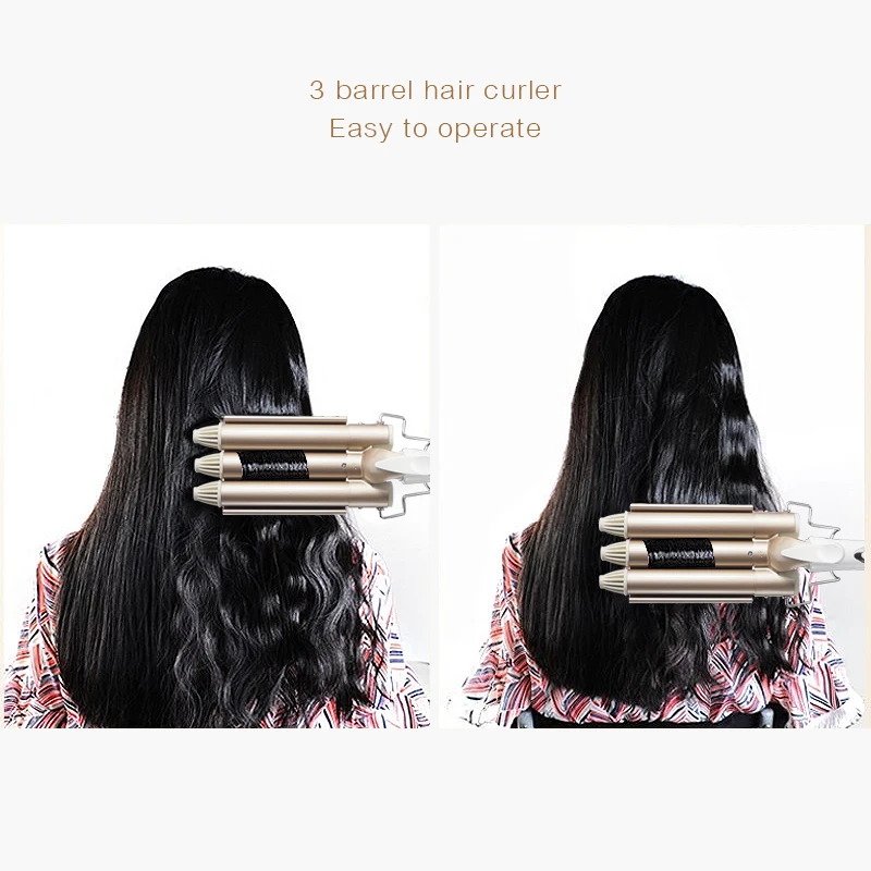 Kemei высокое качество тройной баррель Плойка для завивки волос глубокая волна инструмент для укладки волос кудрявые волосы уход за волосами Пермь бигуди 35D