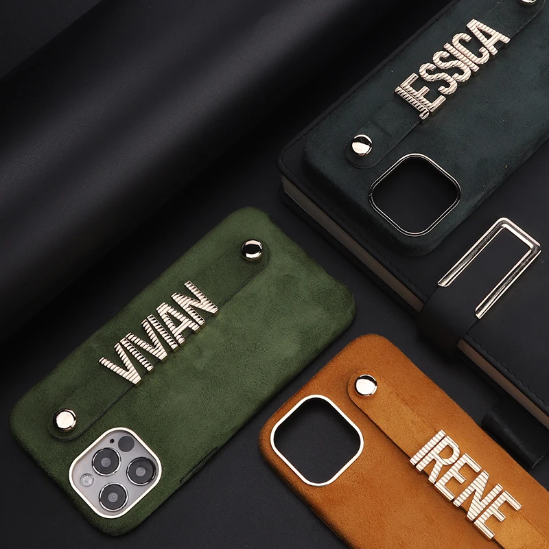 Роскошный кашемировый кожаный чехол для телефона с именем на заказ,...