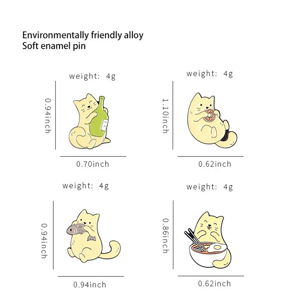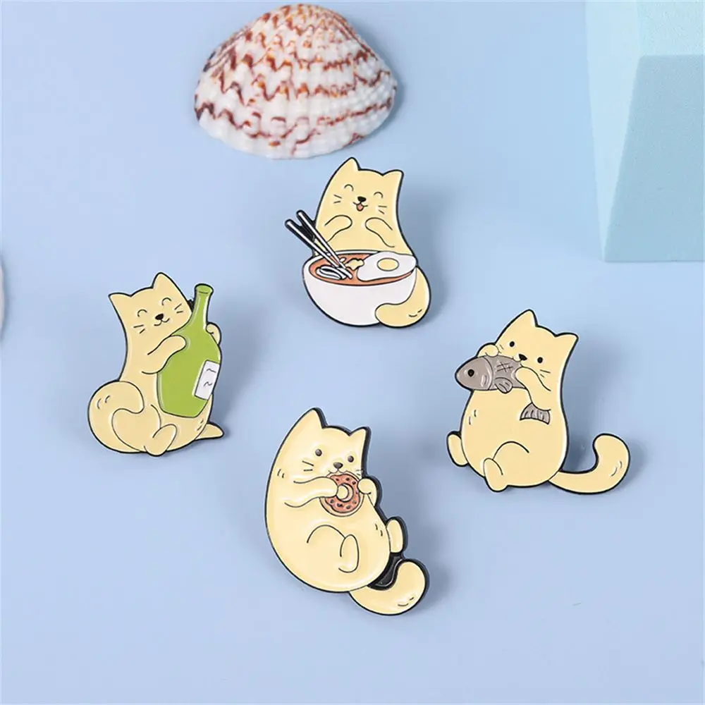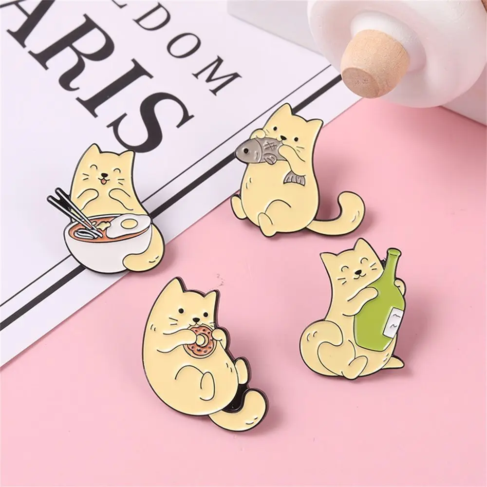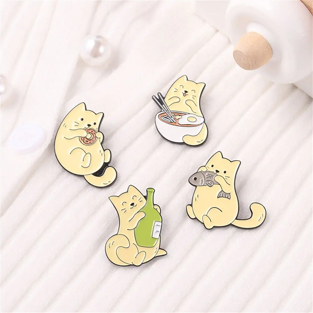 Эмалированные броши в форме кошки с едой, котенка и вина, металличе...