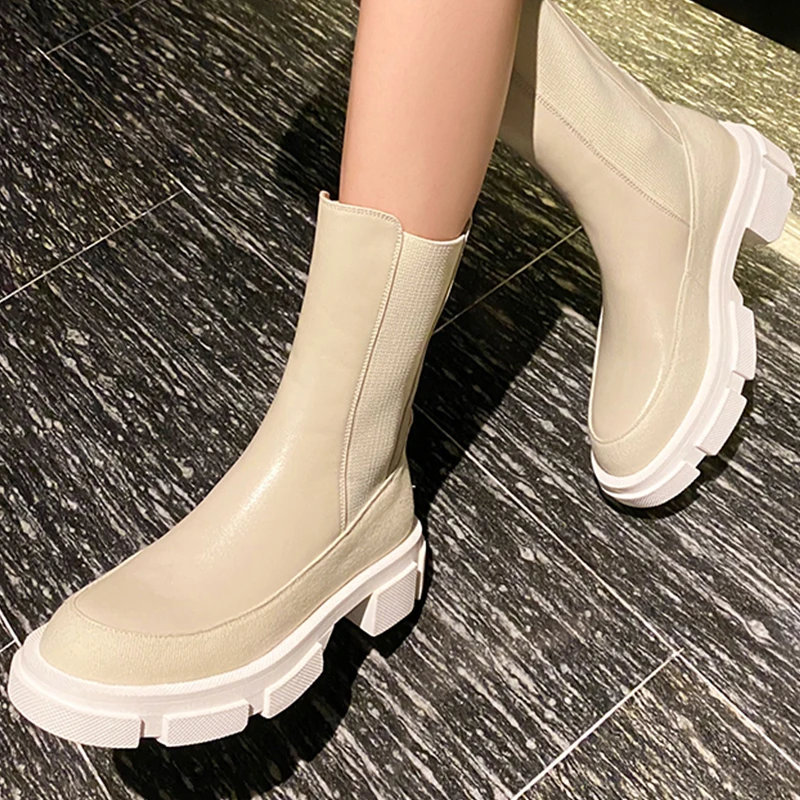 Женские ботильоны из натуральной кожи, черные ботинки челси из воловьей кожи с прострочкой, 2 цвета, 22-25 см, весна 2021