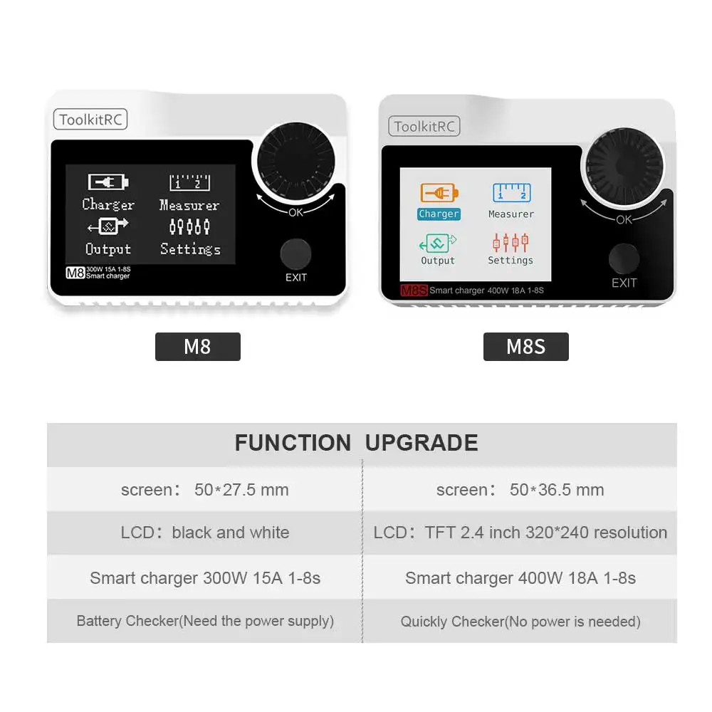 Зарядное устройство ToolkitRC M8S, 400 Вт, 18 А, 2,4 дюйма, цветной ЖК-экран