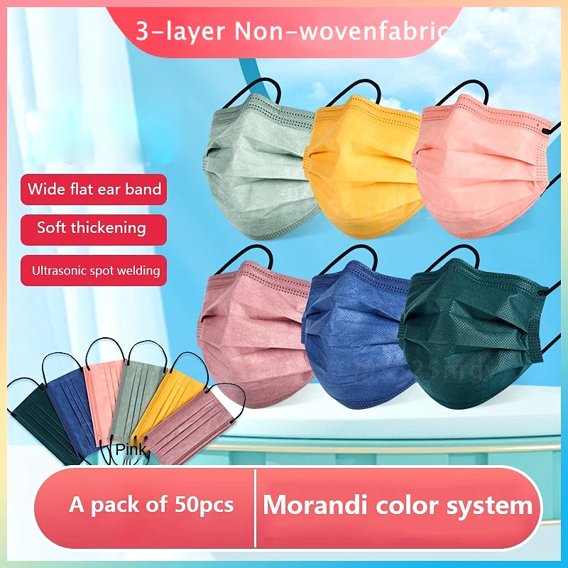 Morandi Цветные Одноразовые Маски для взрослых 10-100 шт. Нетканые 3-слойные фильтры синяя зеленая маска для лица дышащая фотомаска