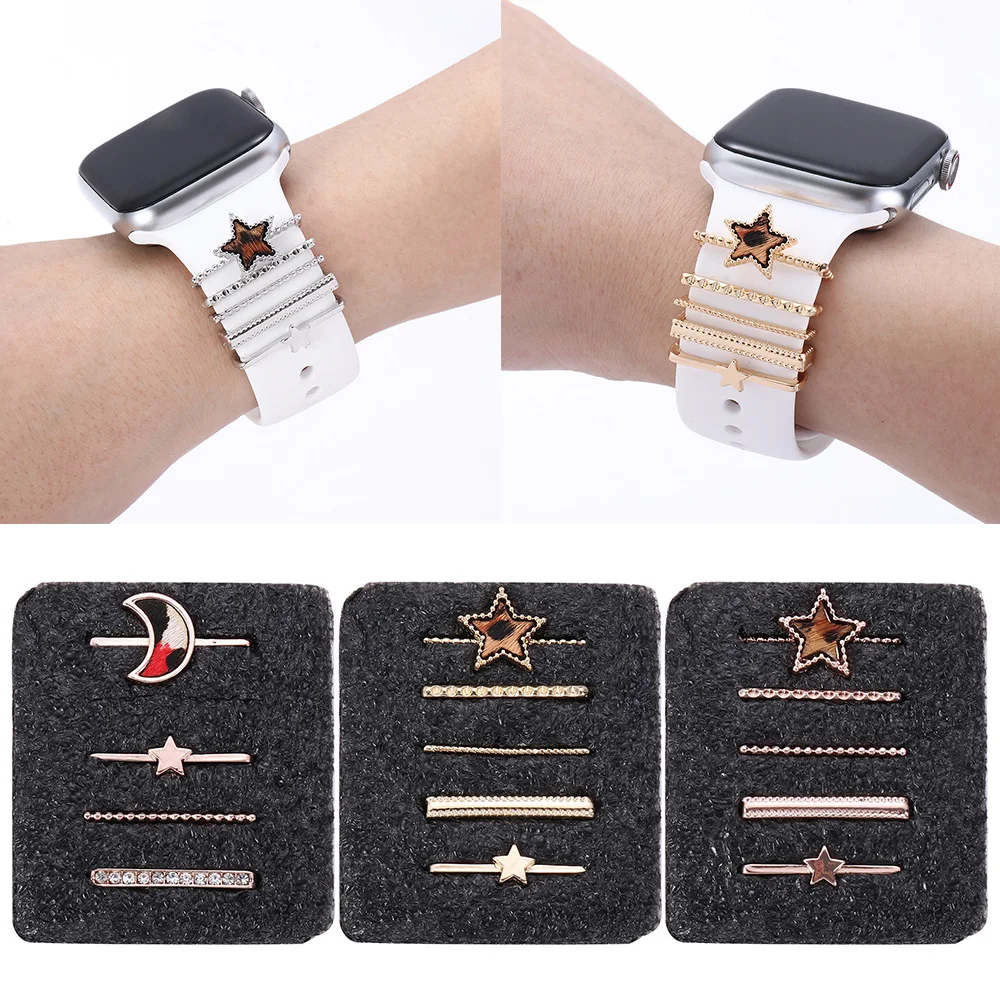 Ремешок декоративный для Apple Watch, креативный металлический Леопардовый Браслет с шармами, силиконовый браслет с орнаментом, аксессуары для iwatch, новинка
