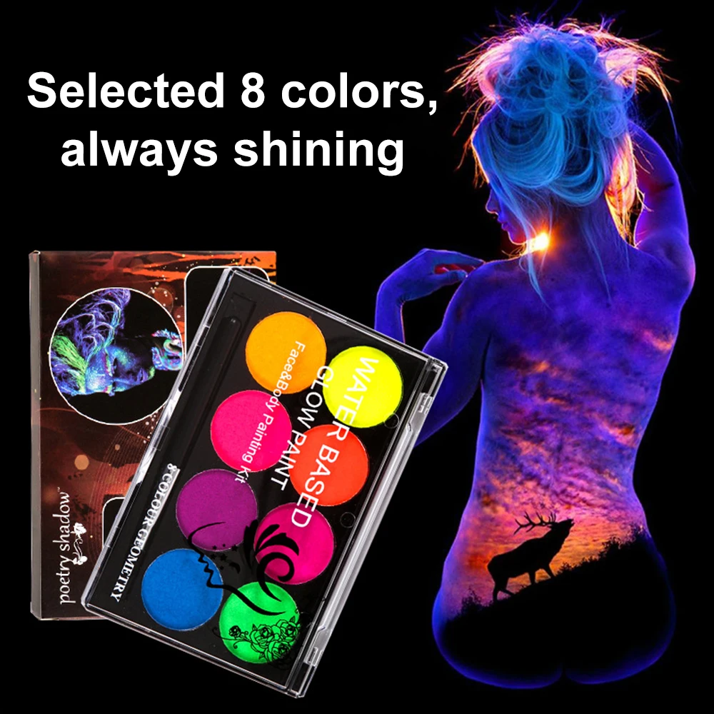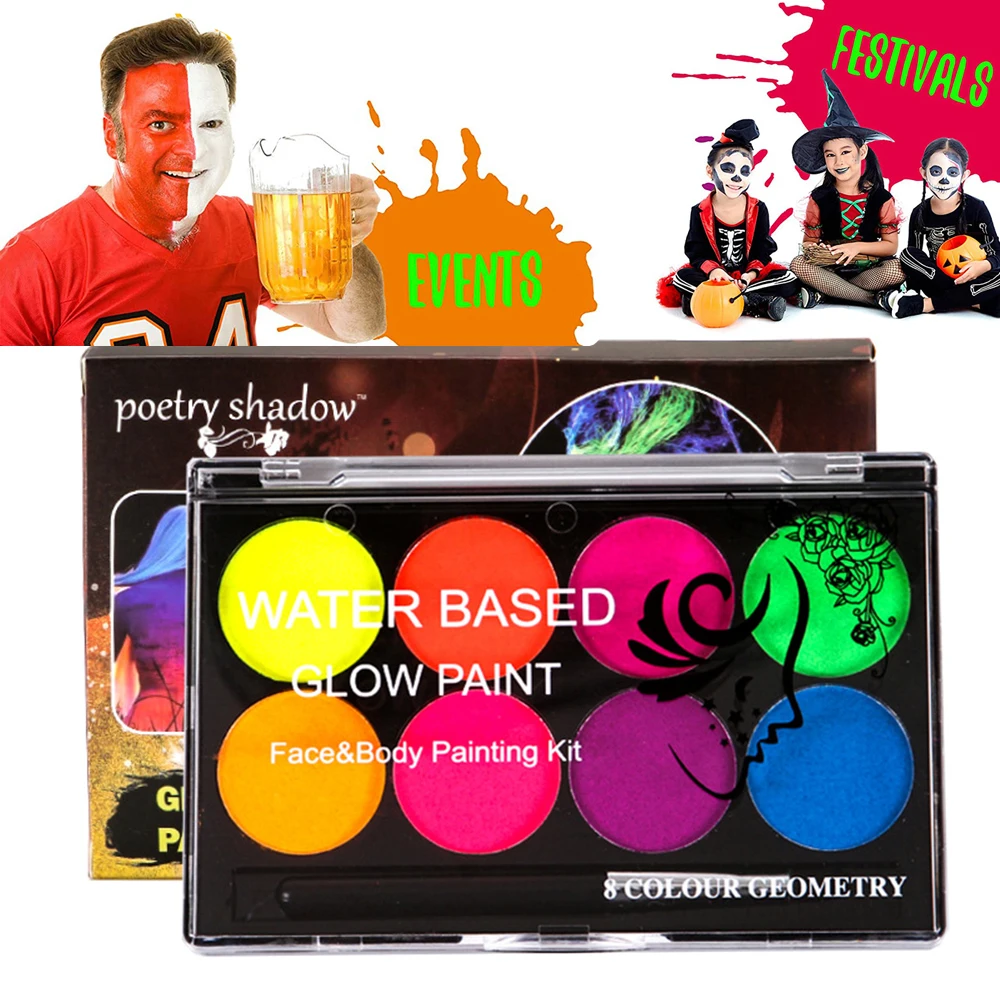 8 цветов luminiscent Face body paint maquiagem UV светится в темнот...