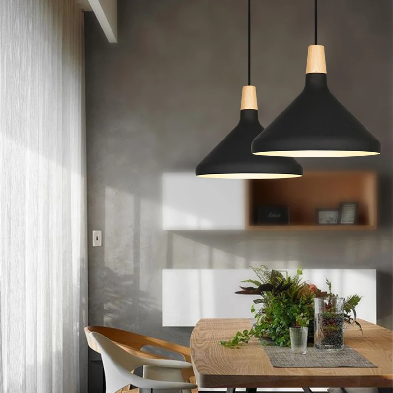 Современная светодиодсветодиодный Подвесная лампа E27, деревянный потолочный декоративный светильник, комнатное освещение для гостиной, кухни, обеденного стола, подвесные светильники