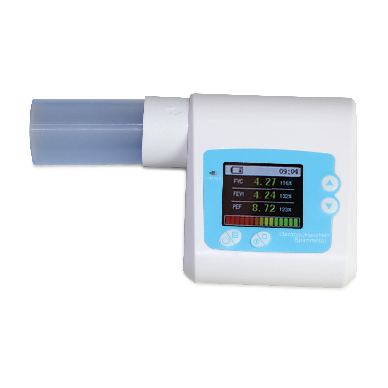 Спирометр-это ручное оборудование для проверки состояния легких, принимает инфракрасный режим для измерения относительных предметов и подходит для больницы, clinique для планового тестирования.