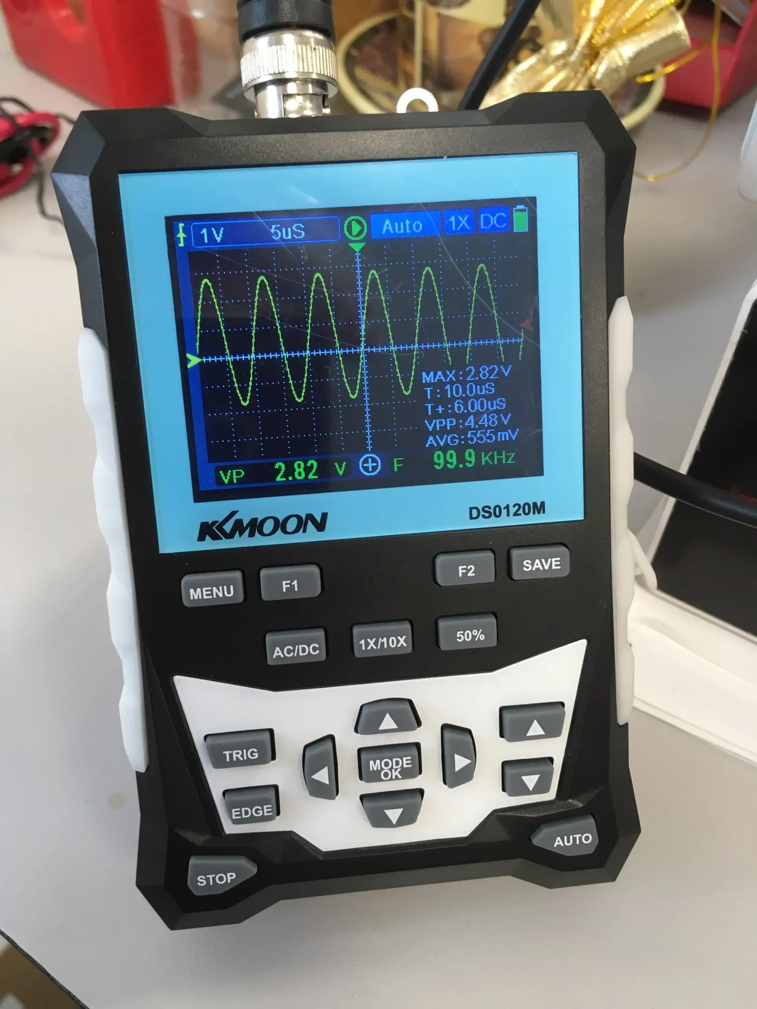 Этот профессиональный осциллограф KKmoon имеет ЖК-экран 320*240, так что вы можете видеть данные более четко, подсветка id регулируется, вы можете изменить его в разных случаях, он также имеет 4 скорости квадратной функции выходного сигнала wa-ve, и в небольшом размере, Так что вы можете взять его в любом месте, где вы хотите его использовать. Приходите и попробуйте.Особенности:С ЖК-экраном 320*240, так что вы можете видеть данные более четко.С пропускной способностью 120 МГц ana-log и 500 мс/с частотой дискретизации.С функцией 4 скоростей сигнала square wa-ve выход: 1 кГц, 10 кГц, 100 кГц, 1 МГц.12 видов измерения параметров: Vpp, Vrms, Vavg, Vp, Vmax, Vmin,F,T,T +,T-. Du +, Du-.Функции: один осциллограф ke-y, три режима сканирования: автоматический, нормальный и одиночный, 12 видов тестовых данных, может хранить 2500 сигналов, поддерживать просмотр эскизов.Параметры формы сигнала, такие как основание времени, амплитуда и наклон триггера, могут быть установлены сами по себе.Силиконовый защитный чехол с обеих сторон фюзеляжа, противоскользящий, противоосенний и ударопрочный, удобный на ощупь.Небольшой размер и светильник, так что вы можете взять его в любом месте вы хотите использовать его.Характеристики:Материал: АБС-пластикЭкран: 320*240 ЖК-экранСопротивление:* 1: 1MΩ* 10: 10 МОмХранение: 2500 сигналов DSOСостояние использования: 0C ~ + 40 ℃, < 75% RHСостояние Storoge: -10C ~ + 60 ℃, < 90% RHВертикальное разрешение: 8 битВертикальная Точность: ±(5% + 0.2div)Точность напряжения: 10%Точность частоты: 1%Уровень срабатывания: ± 3.8div (0. 1div на шаг)Положение триггера: ± 6div (0. 1div на шаг)Диапазон временной базы: 6ns/div ~ 50s/divРежим сканирования: автоматический, одиночный, нормальныйБатарея: 1*18650 литиевая батарея (в комплекте)Длина записи: 12divРазмер посылка: 193*143*44 ммВес посылка: 381 гУпаковочный лист:1 * осциллограф1 * зонд1 * Руководство пользователя1 * USB кабель