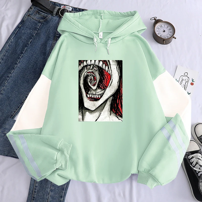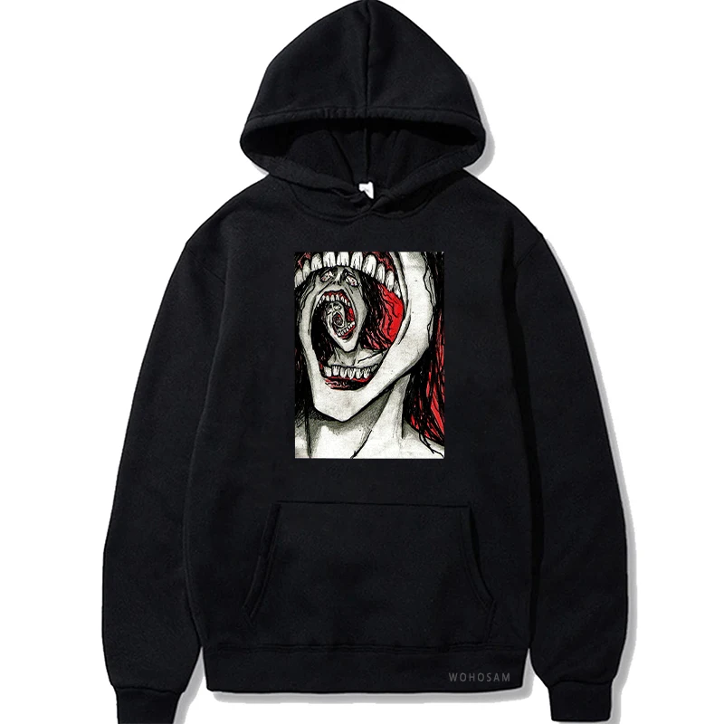 Толстовки с капюшоном в стиле ужасов, аниме, манга, Junji Ito, странные Мультяшные женские и мужские зимние теплые толстовки с длинным рукавом