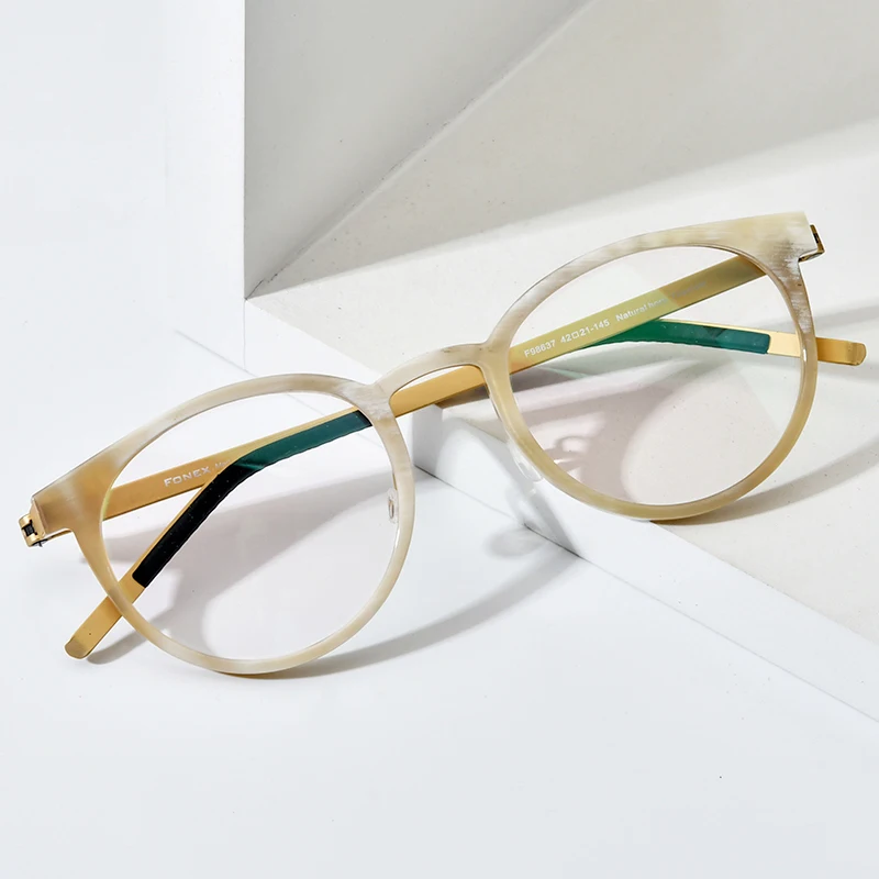 FONEX Титановая оправа для очков с Буйволом для мужчин и женщин, винтажные круглые Рецептурные очки в стиле ретро, F98637, 2022