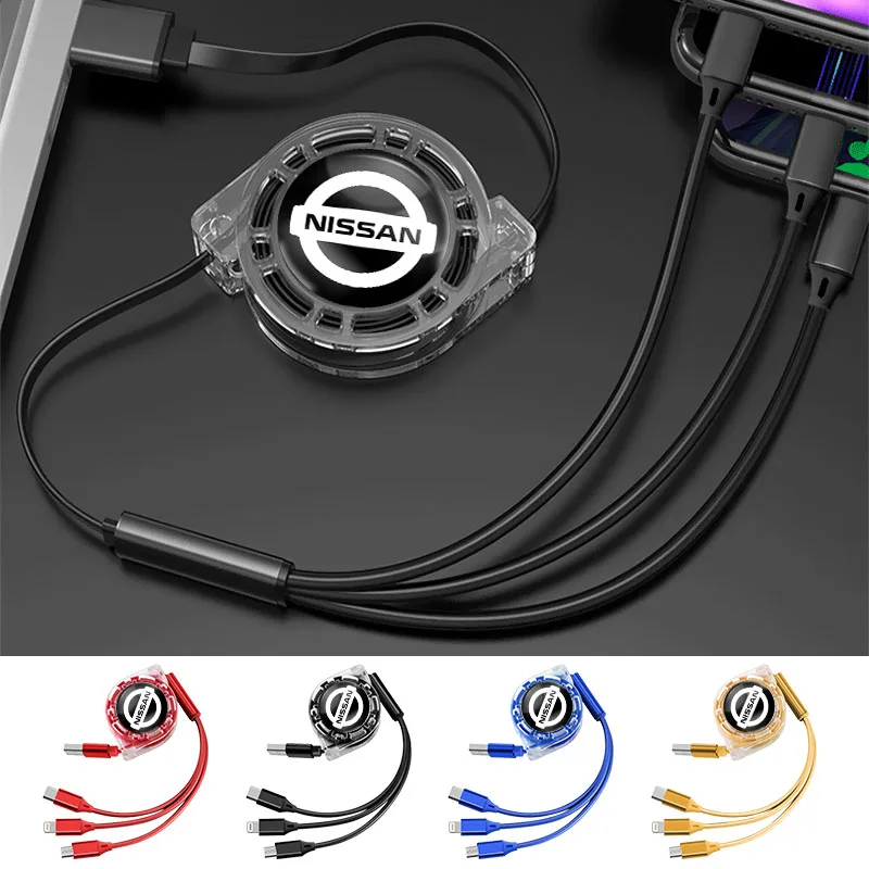 Автомобиль логотип Выдвижной три в одном Телефон зарядный кабель для Nissan Nismo X-trail Almera Qashqai Tiida Sunny Teana Primera Micra Navara
