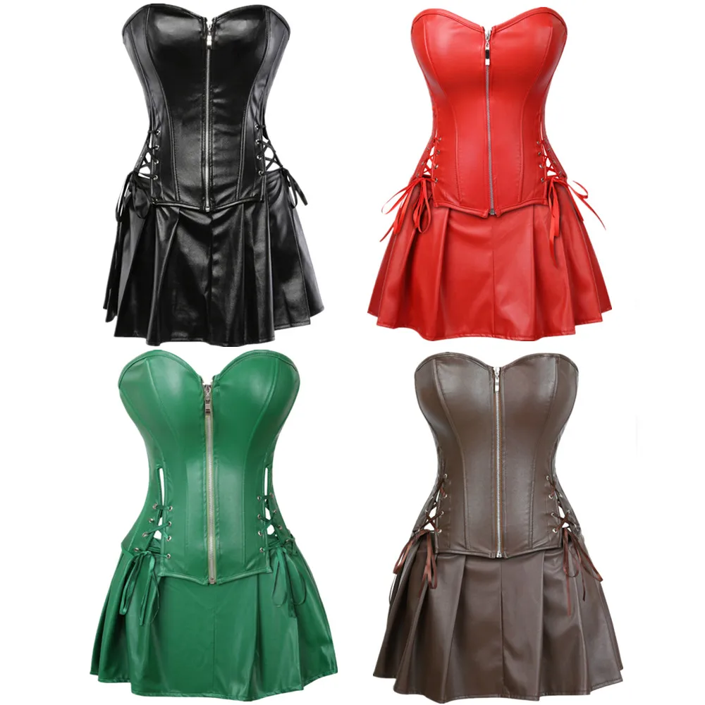 Сексуальные кожаные платья Корсеты юбка в стиле Бурлеск молния спер...