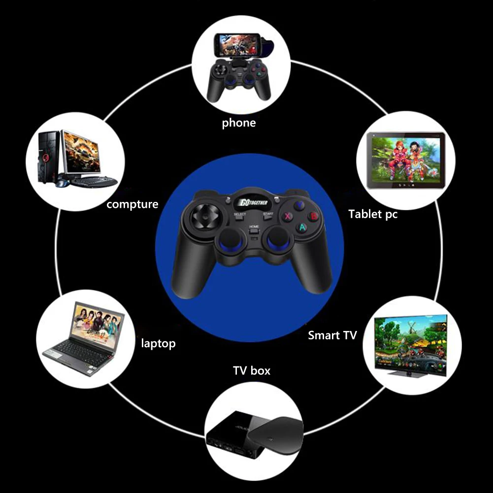 2,4G USB беспроводной игровой контроллер геймпад аксессуары для Android запчасти USB джойстик Управление для ТВ компьютера PC360 ТВ приставка стебель с OTG конвертеромХарактеристика:1. Этот геймпад не поддерживает Bluetooth, без вибрации и использует зрелую технологию беспроводной передачи 2,4G. Расширенное автоматическое подключение.2. Используя высокопроизводительные чипы, геймпад имеет лучшую стабильность в игре, высокоточный 360 ° джойстик, почти Нулевая задержка.3. Дизайн кривой человеческого тела, вы не будете чувствовать усталость, если вы зависимы от игры в течение длительного времени.4. Этот беспроводной контроллер совместим с различными симуляторами и играми. Поддерживает двойные боевые настройки. Подходит для многих новых и старых ПК-игр. Поддержка игр на платформе Android и некоторых классических игр, с которыми вы знакомы.5. Совместимость с многоплатформенными играми. Поддержка различных устройств Android, ПК, планшетных ПК, ТВ-приставок, smart TV, PS3 и т. д.6. Этот контроллер поставляется с двумя адаптерами OTG, адаптером Micro USB и другим адаптером Type C, что позволяет использовать этот контроллер практически на всех телефонах Android.7. Ручка имеет дизайн 3D Рокер с высокой точностью 360 °. Удобная конструкция с перекрестными клавишами делает рулевое управление более гибким и точным. Эргономичное сцепление, Нескользящая Текстура, матовая ручная работа, не уставшая в течение длительного времени.8. Высокое позиционирование, чувствительность и точность.9. Все контроллеры прошли строгие повторные тесты нажатия клавиш, чтобы обеспечить хорошую производительность ключа, обеспечить стабильность и в основном нулевую задержку игры. Высококачественная чувствительная к давлению D-Pad, джойстик 360 ° dead zone, высокочувствительные и точные кнопки действия, дают вам самый быстрый игровой опыт.Беспроводная технология 10.2.4GHz обеспечивает стабильное соединение без каких-либо задержек и обеспечивает диапазон до 8 метров (26,3 футов), что позволяет наслаждаться игрой в дальнем конце комнаты. Спецификация:Мощность в режиме ожидания: ≤ 60uAРабочий ток: ≤ 15 мААккумулятор: 2 батарейки типа АА (не входят в комплект)Рабочий ток: 30 мАРабочая температура: -20 °C ~ 65 °CРасстояние: около 8 мПрименение: для PS4/PS3/Switch/Android smart phone/tablet PC/TV box/smart TV и других устройствРазмеры: около 160X100X65 мм/6,3X3,94 X 2.56in Примечание:1. Пожалуйста, убедитесь, что ваш телефон имеет функцию OTG.2. Из-за различных настроек монитора и светильник эффект, фактический цвет элемента может быть s светильник ly отличается от цвета, представленного на снимках. Спасибо!3. Возможны отклонения в 1-2 см вследствие измерений вручную.