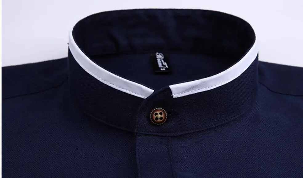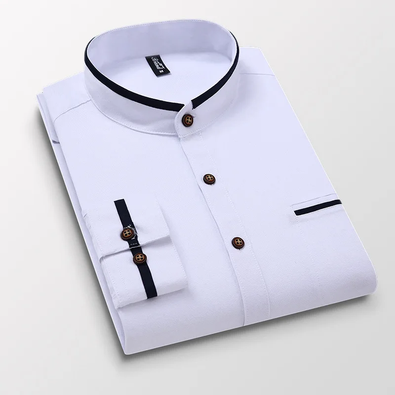 Рубашки для мужчин M -5XL с длинным рукавом, Осень-зима, рубашка с воротником-стойкой, мужская деловая одежда, повседневная белая однотонная рубашка MY630