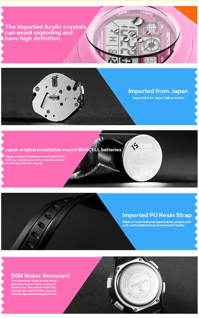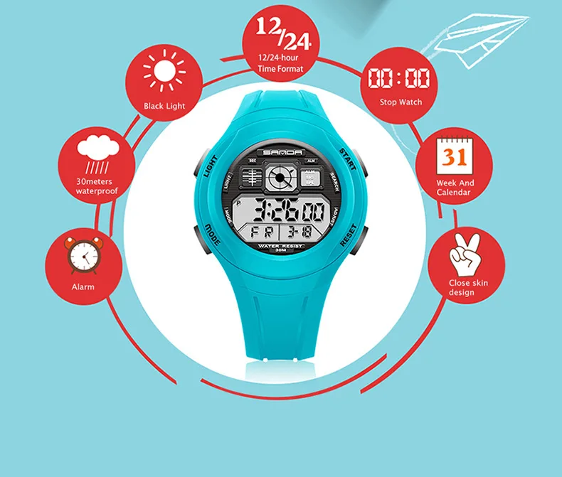 Детские наручные часы SANDA, цифровые, многофункциональные, водонеп...
