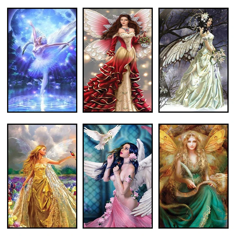 Алмазная 5D картина сделай сам с ангелом, полная круглая Алмазная мозаика с крыльями, вышивка Стразы