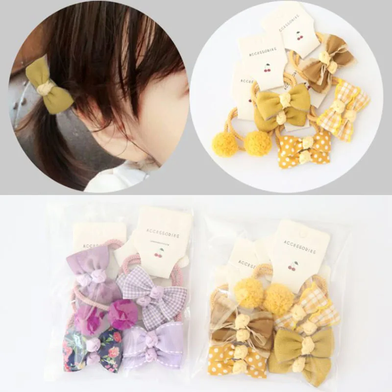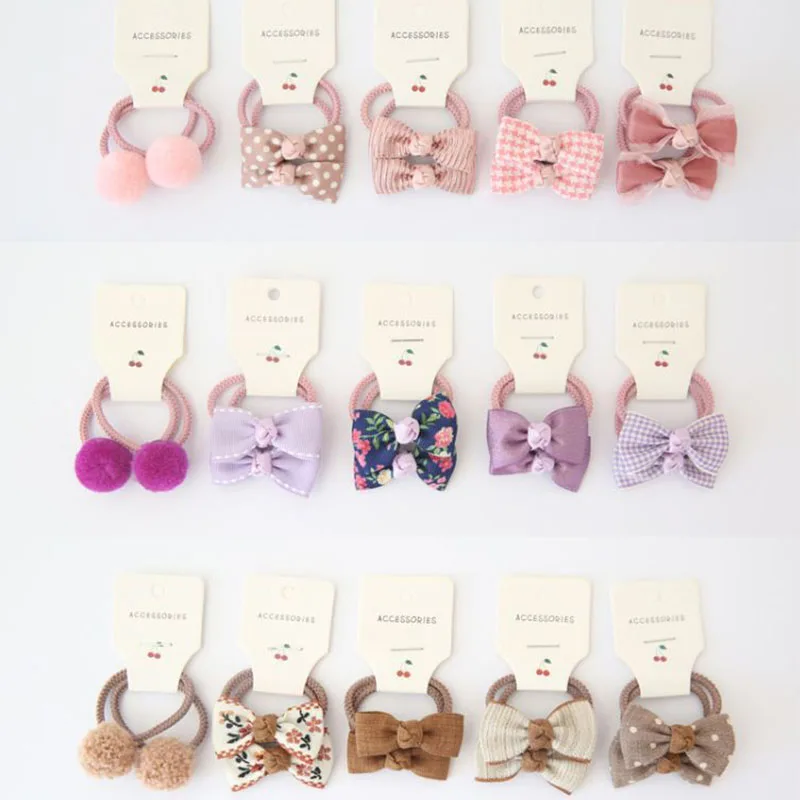 10 шт.компл., цветочный бант, Детские волосы, веревка, эластичные, одноцветные, с помпоном, Детские волосы, галстук для девочек, с рисунком, в горошек, в клетку, с принтом, Детская резинка